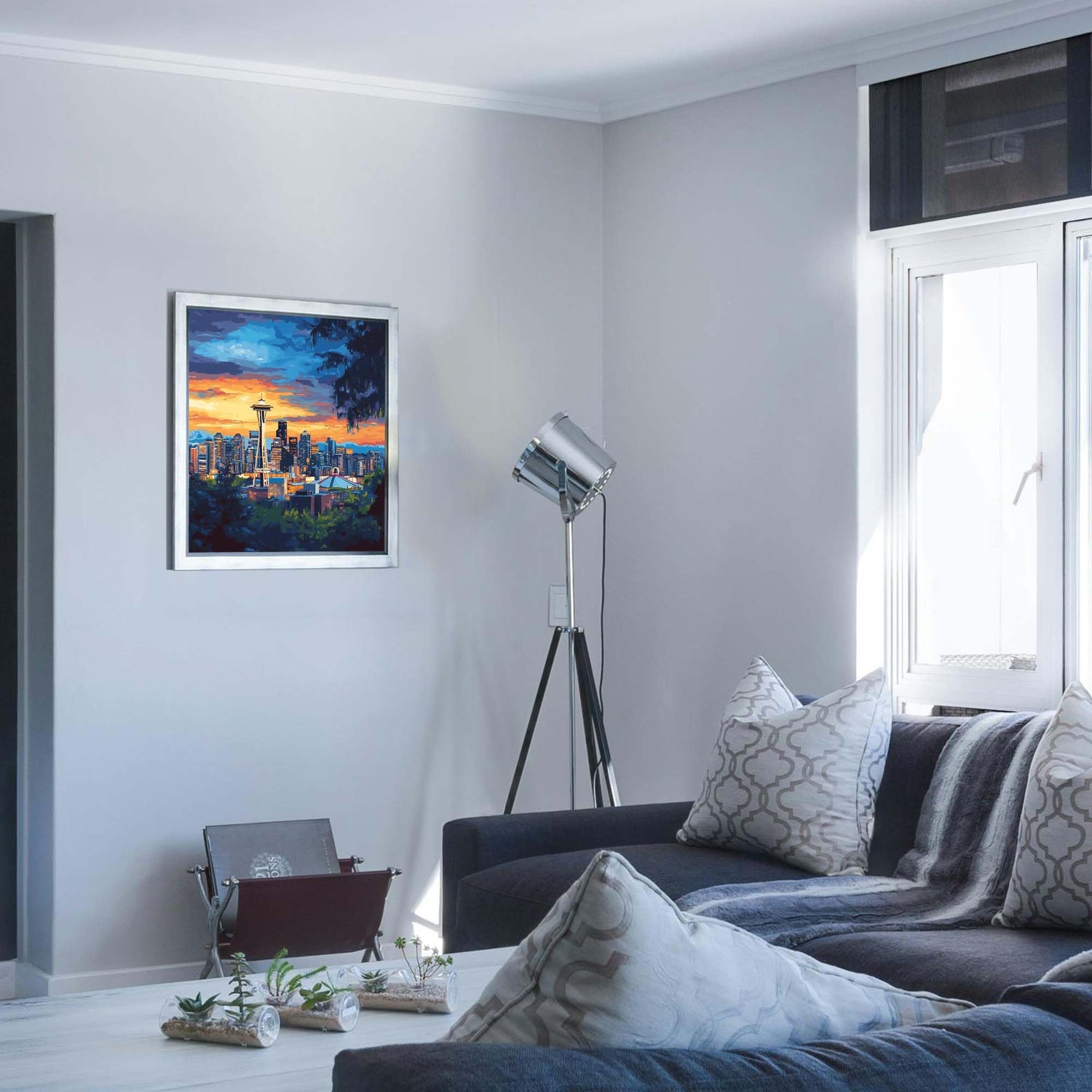 ARNLRDYA Seattle Landscape Paint by Numbers for Adults, Space Needle Landmarks Paint by Number Kits, City Sunset Acrylic Painting on Canvas for Gift Home Decor(16x20inches, No Frame)
