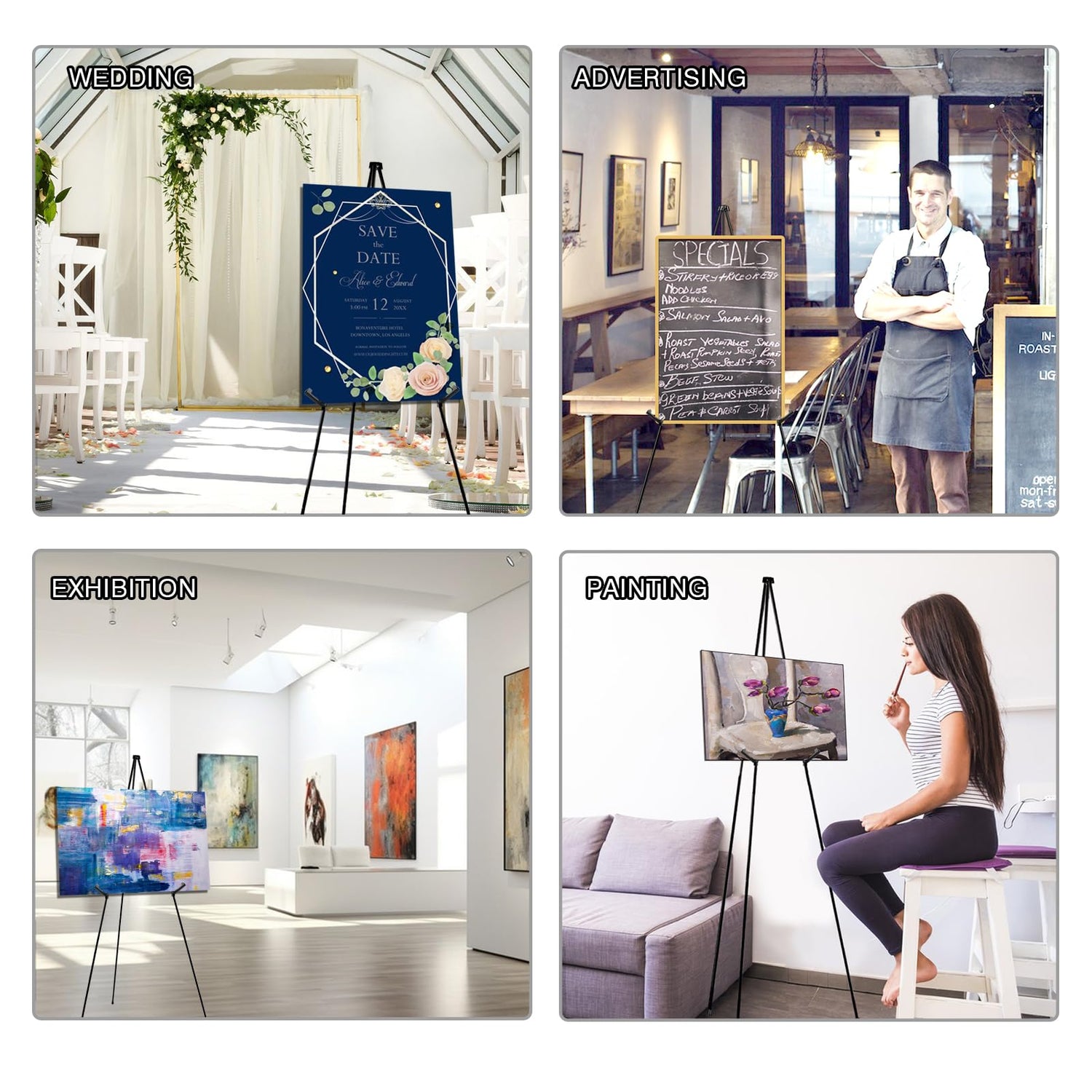 AROIC 63" Easel Stand for Display, 3 Pack Portable Foldable Metal Easel, Easels for Signs Wedding Logos,Arts, Painting,Adjustable Floor Easels with 3 Storage Bag