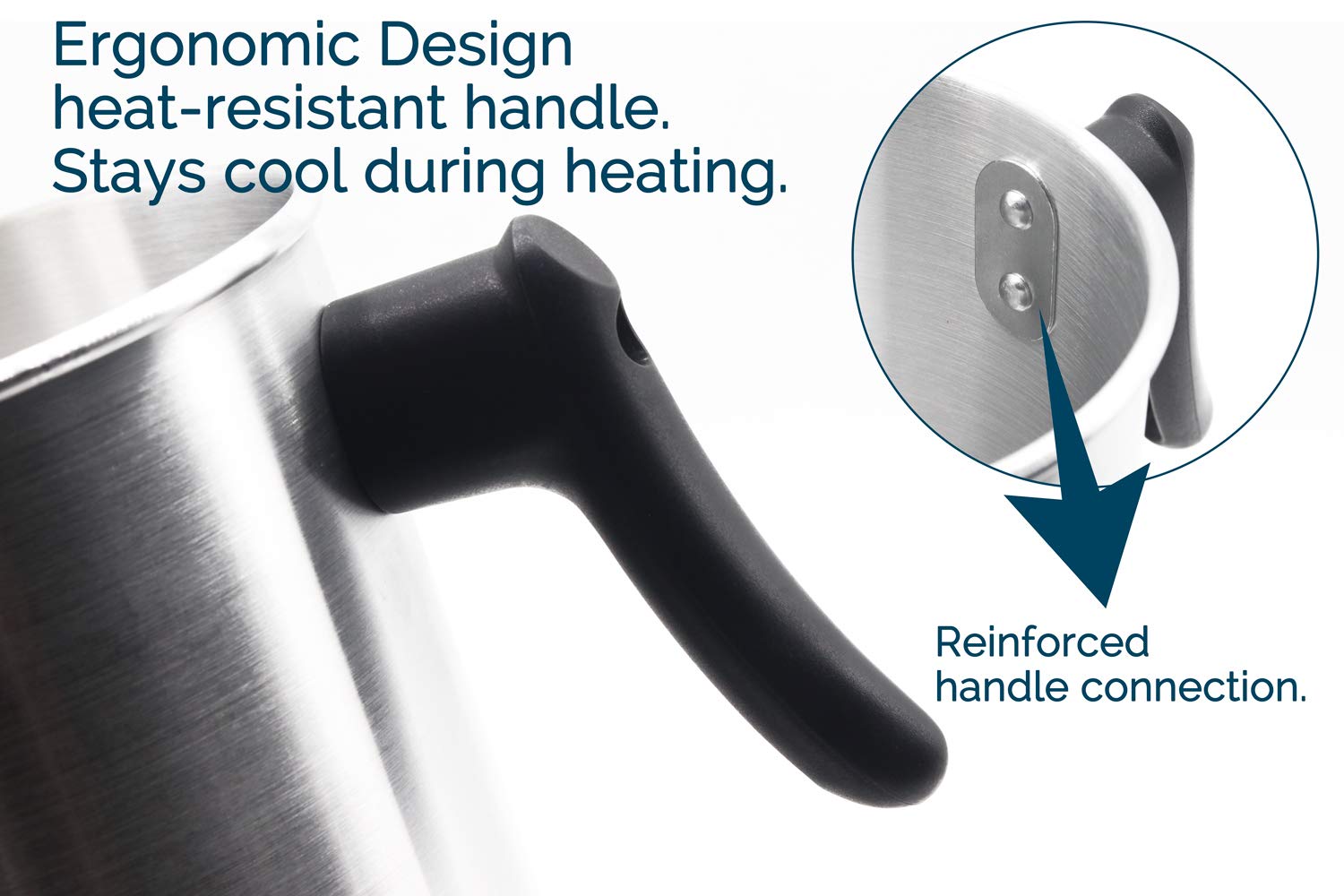 - SAFE: Heat-Resistant handle design 4 times stronger heat-resistant ability making it cool and safe to touch all the way during heating. Which allows you to hold the handle while boiling wax without burning your hands.