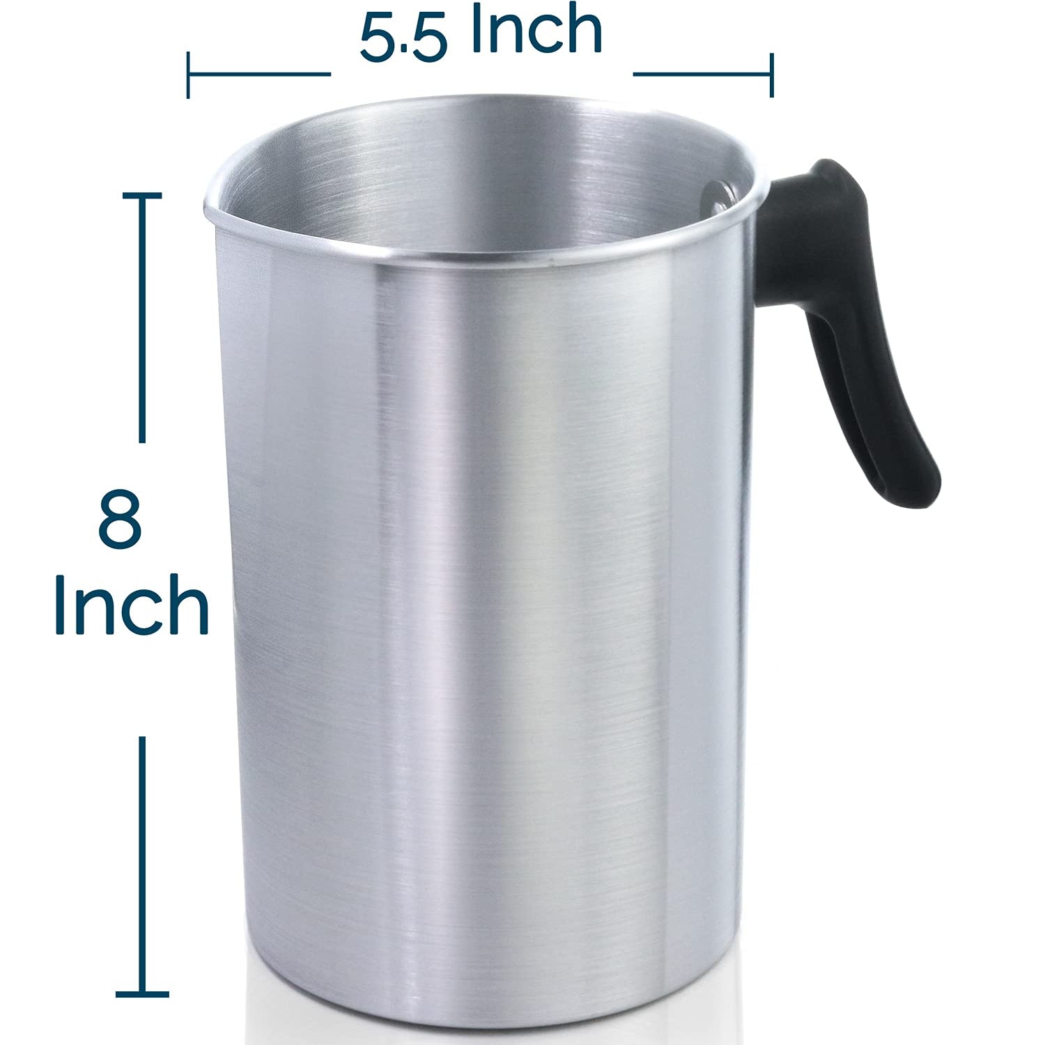- LARGE CAPACITY: Holds up to 4 pounds of melted wax. 8-inch-tall by 5.5 inches in diameter, perfect item for small batch DIY soy candle making.