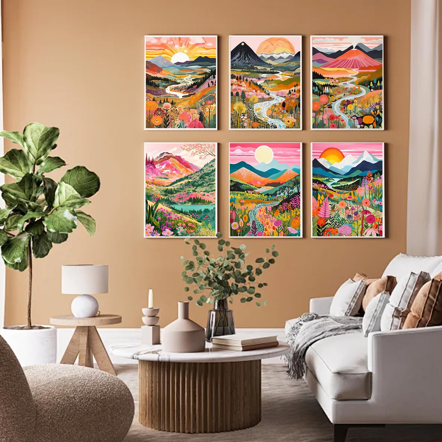 ARPADAMO 6 pack Diamond art Kits for Adults,5D Mountain Flower Diamond Painting DIY Diamond Art landscape Diamond Painting for Adult,Round Full Drill Diamonds, Diamond Art Kit for Home Decor-12x16inch