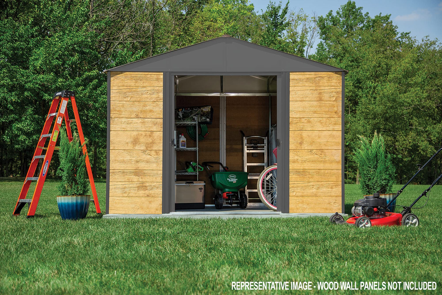 Arrow 10' x 8' Ironwood Galvanized Steel and Wood Panel Hybrid Outdoor Shed Kit, Anthracite