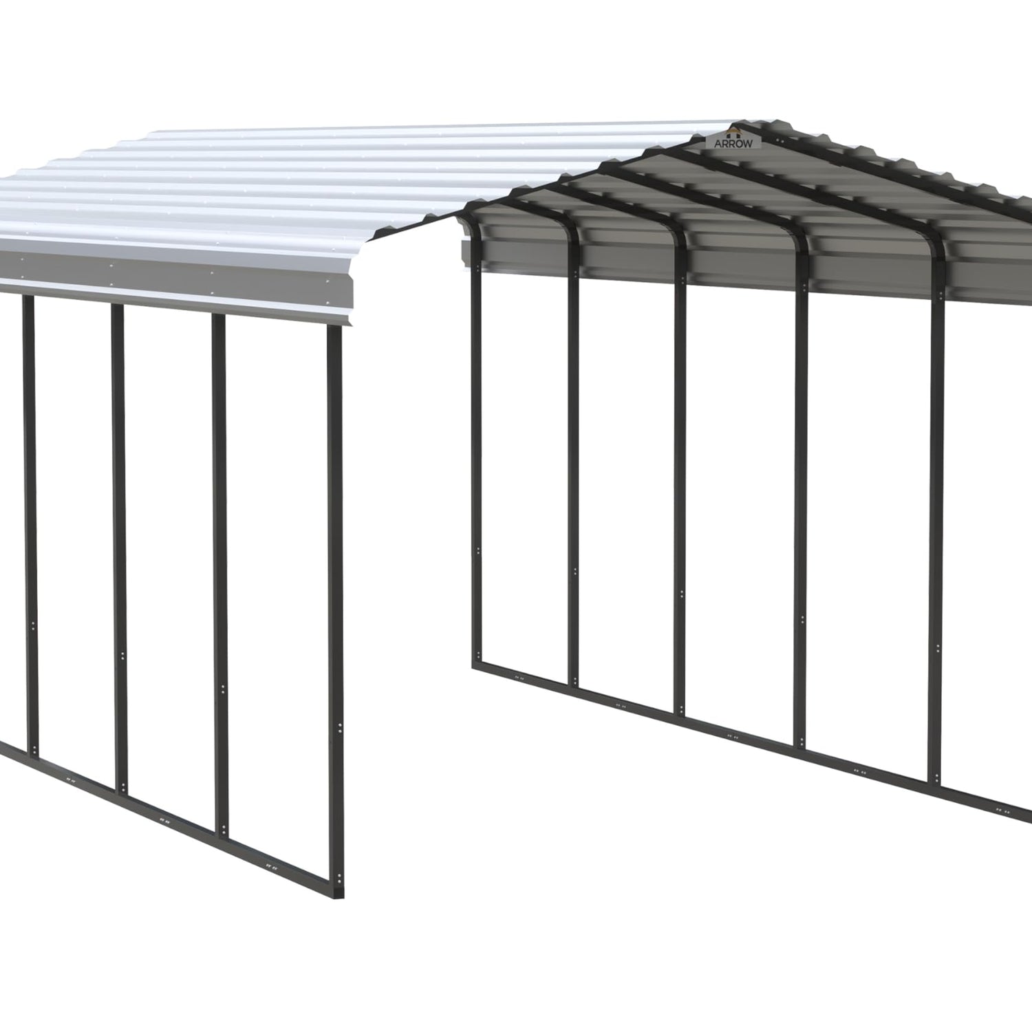 Details: Protect your property with this galvanized steel carport from Arrow! This full-size all-steel carport comes in a variety of sizes to protect all of your vehicles, outdoor equipment and more from those hot sun rays. Made with a heavy-duty galvanized steel roof and all-steel, premium powder coated tube frame, this carport is both snow and wind rated, making it ideal for keeping your expensive equipment out of the elements. With two neutral color options, a wide array of sizes, and easy installation, Arrow protective carports are perfect for vehicles, boats, tractors, outdoor picnic areas and much more.