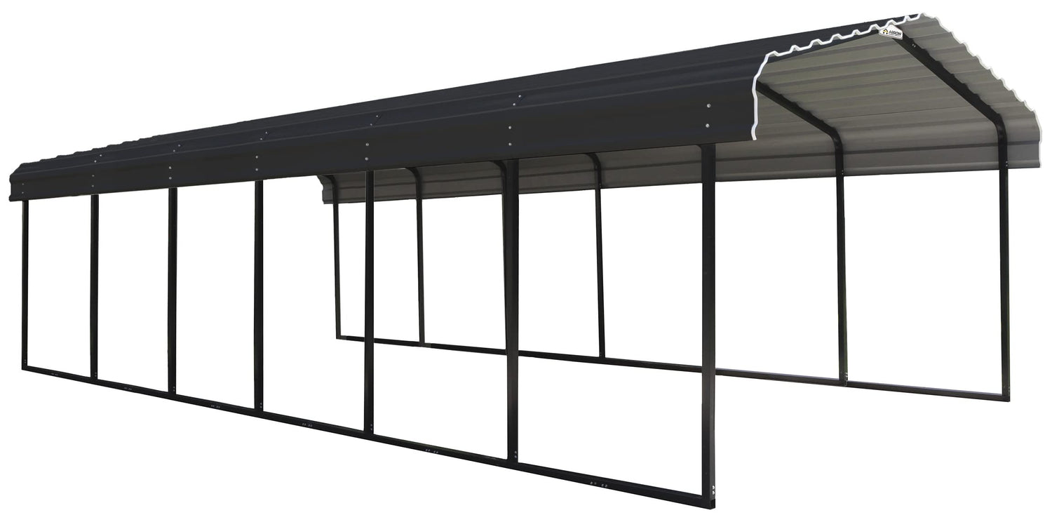 Arrow Carports Galvanized Steel Carport, Full-Size Metal Carport Kit, 12' x 29' x 7', Charcoal