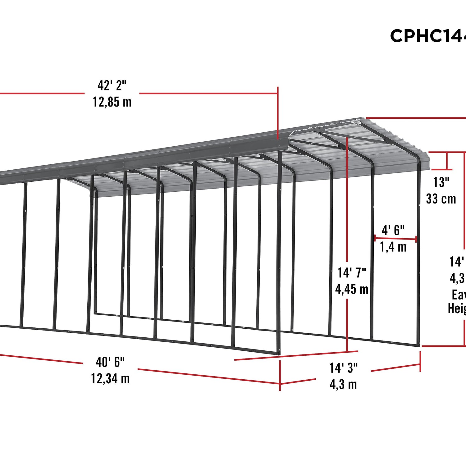 Arrow Carports Galvanized Steel Carport, RV Metal Carport Kit, 14' x 42' x 14', Charcoal