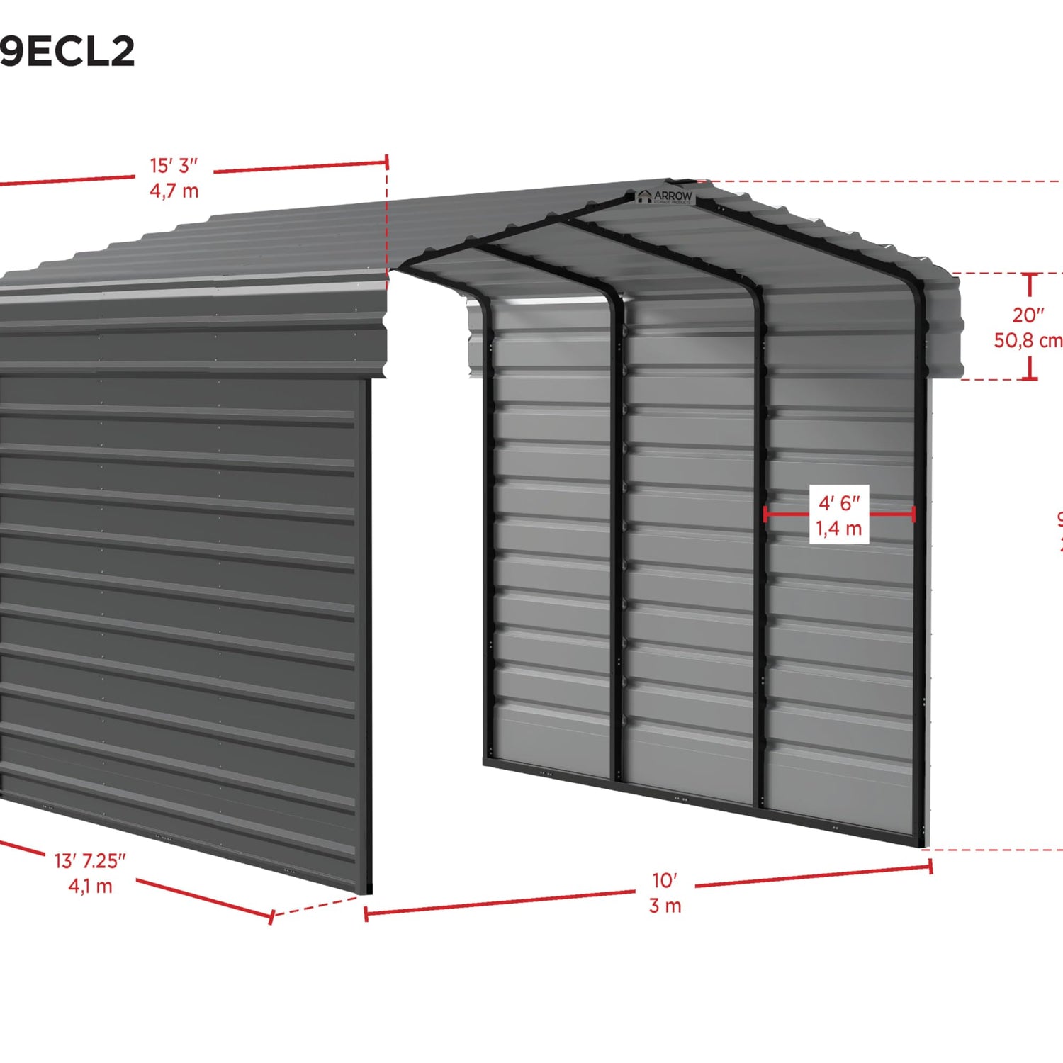 Arrow Carports Galvanized Steel Carport, with 2-Sided Enclosure, Compact Car Metal Carport Kit, 10' x 15' x 9', Eggshell