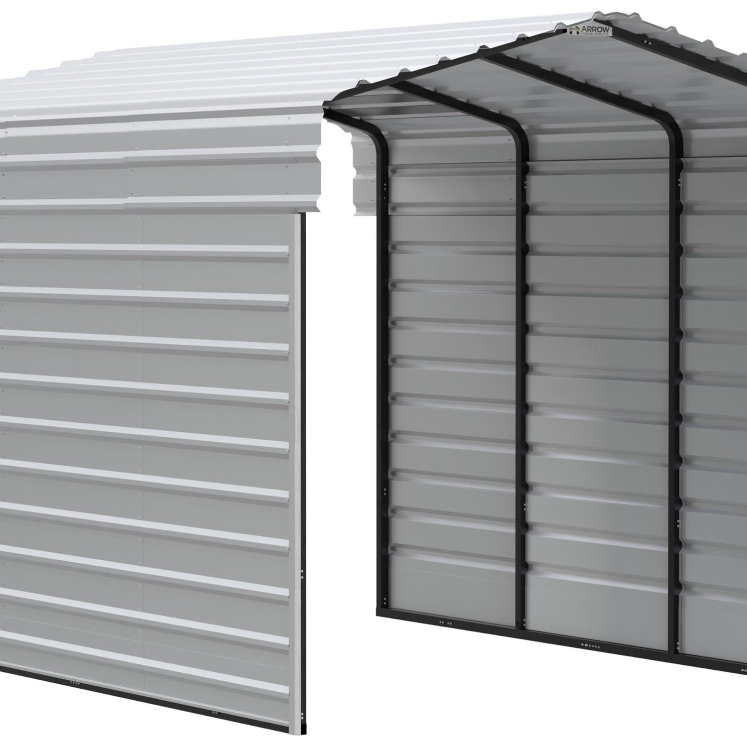 Details: Protect your property with this galvanized steel carport with 2-sided enclosure from Arrow! This durable, all-steel carport comes in a variety of sizes to protect all of your vehicles, outdoor equipment and more from those hot sun rays. Made with a heavy-duty galvanized steel roof and all-steel, premium powder coated tube frame, this carport is both snow and wind rated, making it ideal for keeping your expensive equipment out of the elements. The included 2-sided enclosure can be attached to the carport to provide extra protection from the elements.With two neutral color options, a wide array of sizes, and easy installation, Arrow protective carports are perfect for vehicles, boats, tractors, outdoor picnic areas and much more.