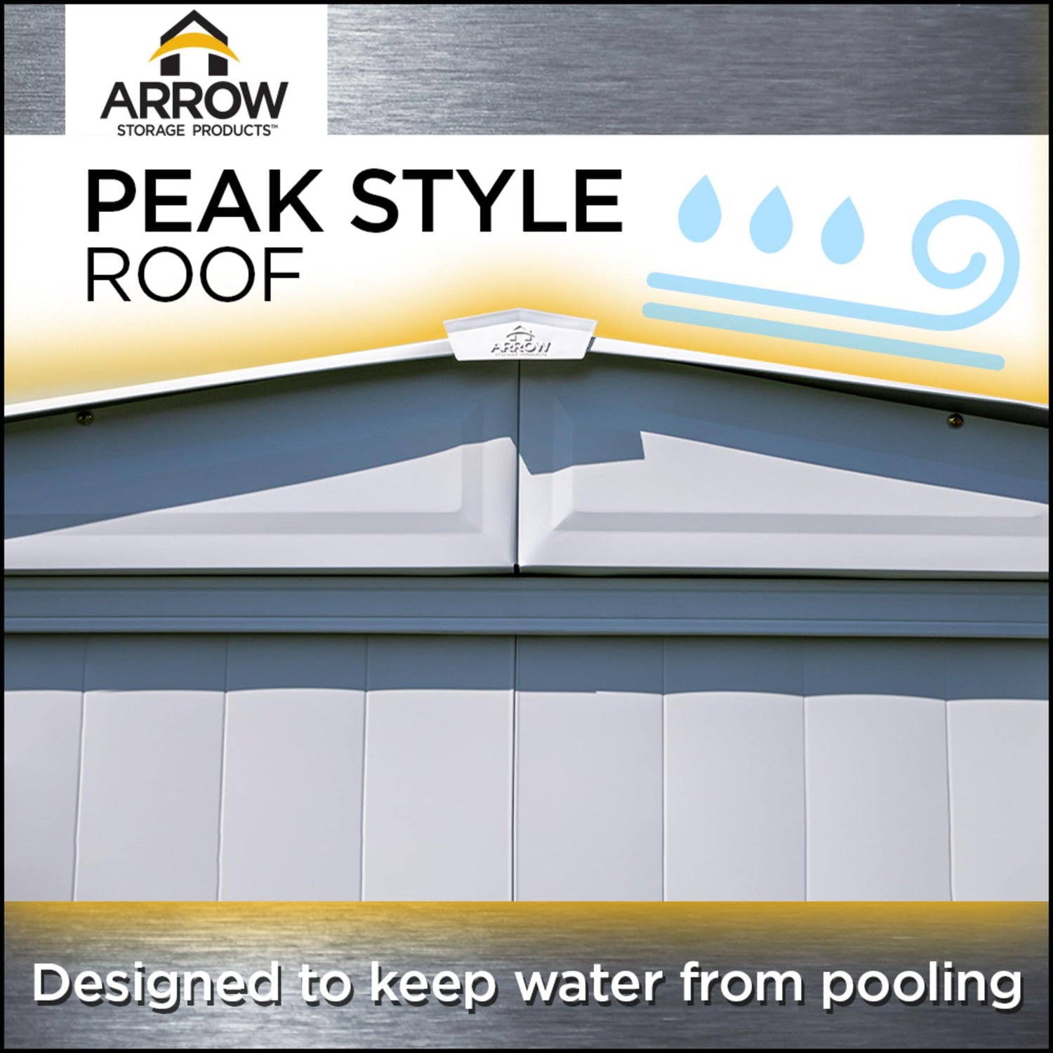 Details: Are you looking for a practical, sturdy storage unit for your backyard? The Arrow Classic series steel storage shed is engineered to protect your landscaping equipment, tools, and gardening supplies, safe from the elements. The shed is made of galvanized steel that’s treated to prevent rust and corrosion. It has a low gable roof that’s designed to prevent water from pooling. It has sliding doors that can be secured with a padlock. The Arrow Classic is a good-looking unit, too. The shed’s timeless vertical wall panels are finished with smooth, hard-wearing Sherwin-Williams Paint finish protects against the elements and seals the steel against rust and corrosion.