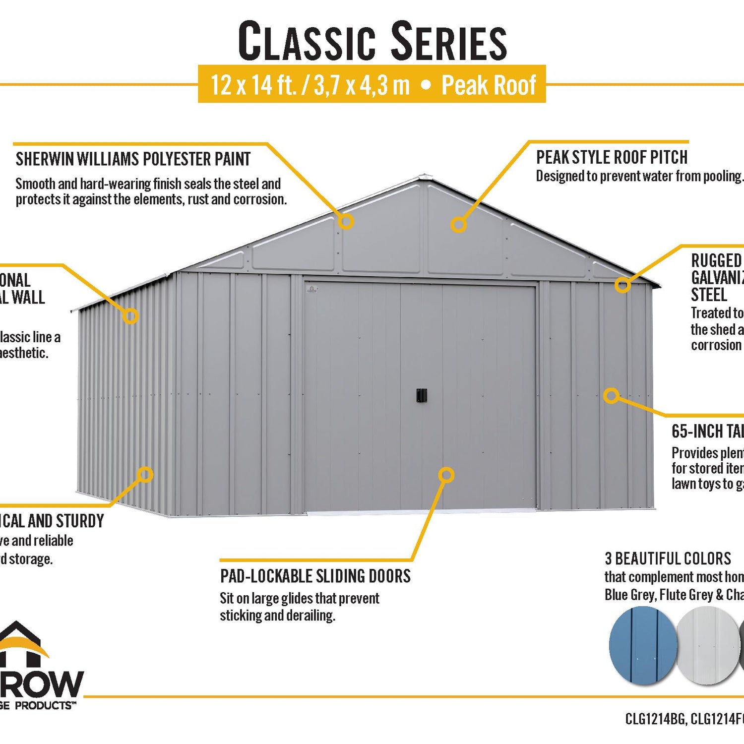 Arrow Classic Metal Shed, 12 x 14, Charcoal