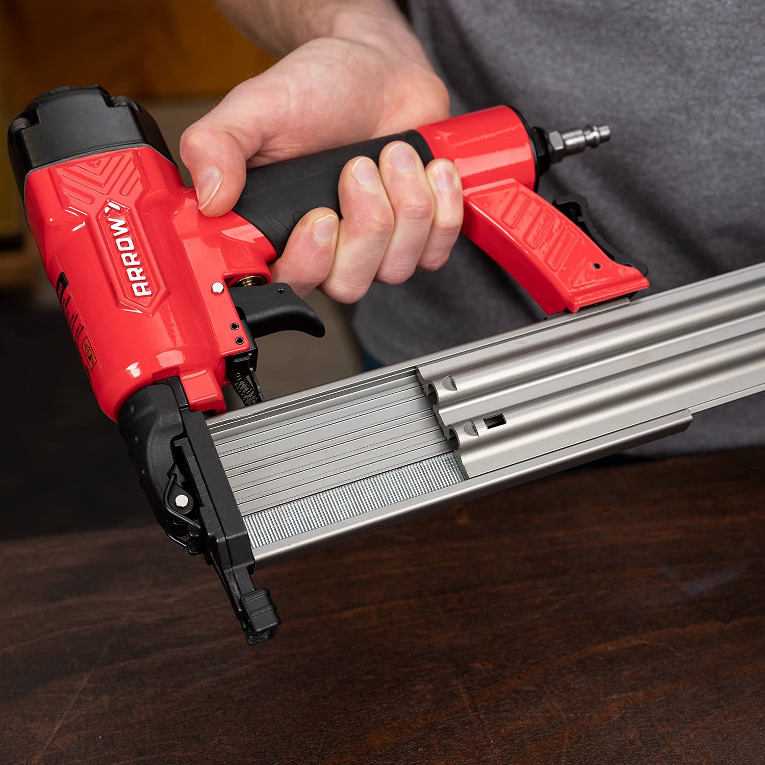 Details: The Arrow PT18G 18 Gauge Pneumatic Brad Nail Gun is the perfect companion for most small trim and interior molding work. The non-marring rubber tip helps protect the project surface and the contact safety prevents misfires. Made of lightweight die cast aluminum, it's easy to handle, yet durable enough for consistent use. Plus the nail indicator window lets users see when brads are running low and the easy to use magazine makes reloading a breeze.
