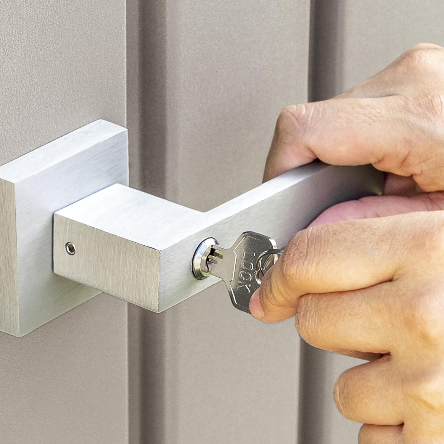 - EASY ACCESS: Sturdy, wide swing doors include a brushed nickel handle with a key lock to secure your stored items when not in use