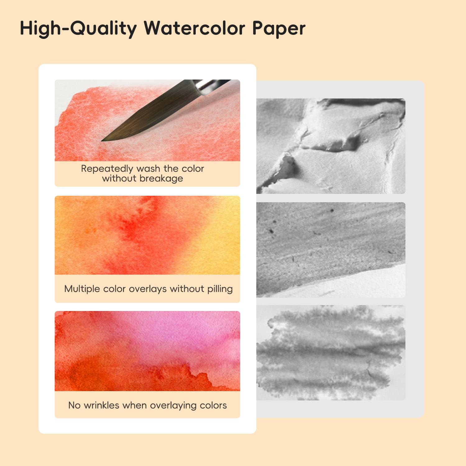 - Excellent Absorbency: The highly absorbent paper allows for vibrant color application and smooth blending, making it ideal for watercolor techniques. The paper's ability to lift colors easily enables corrections and layering.