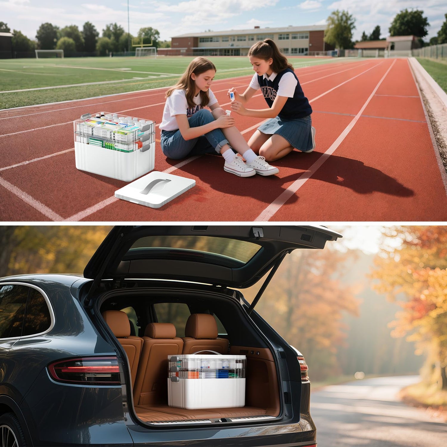- 【High-Quality Material Medicine Storage Box】The thickened and reinforced design makes this first aid storage box more sturdy and durable. Sealed design with 2 layers of clear, grey and white bottom layer to protect against sunlight and moisture.