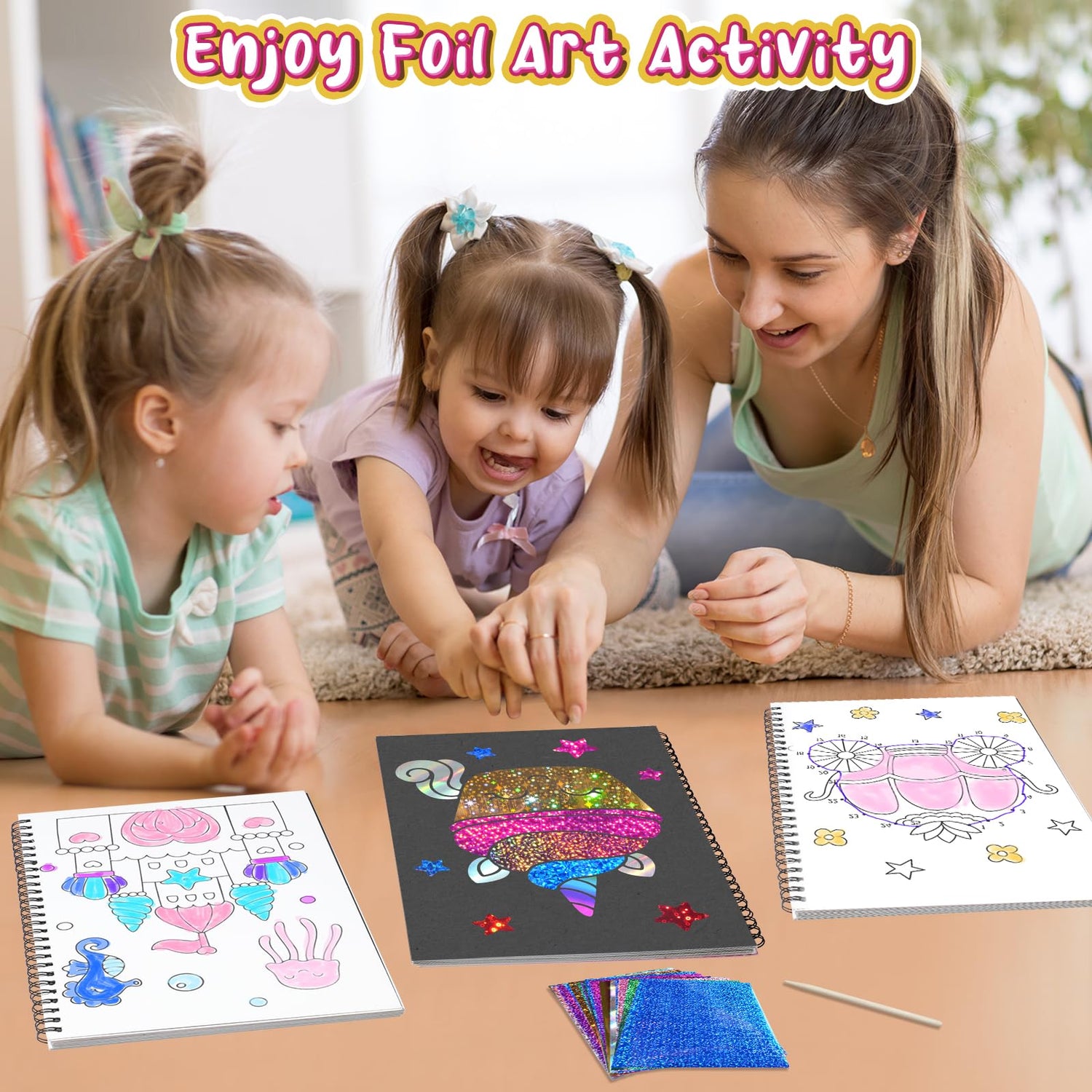 Art & Craft Activity,Foil Craft Princess DIY Fun Art Kits,No Mess Creative Foil Art Kits Set Drawing Game for Kids,Birthday Gifts Crafts Supplies Travel Toys for Girls Boys Ages 4 5 6 7 8 9 Year Old