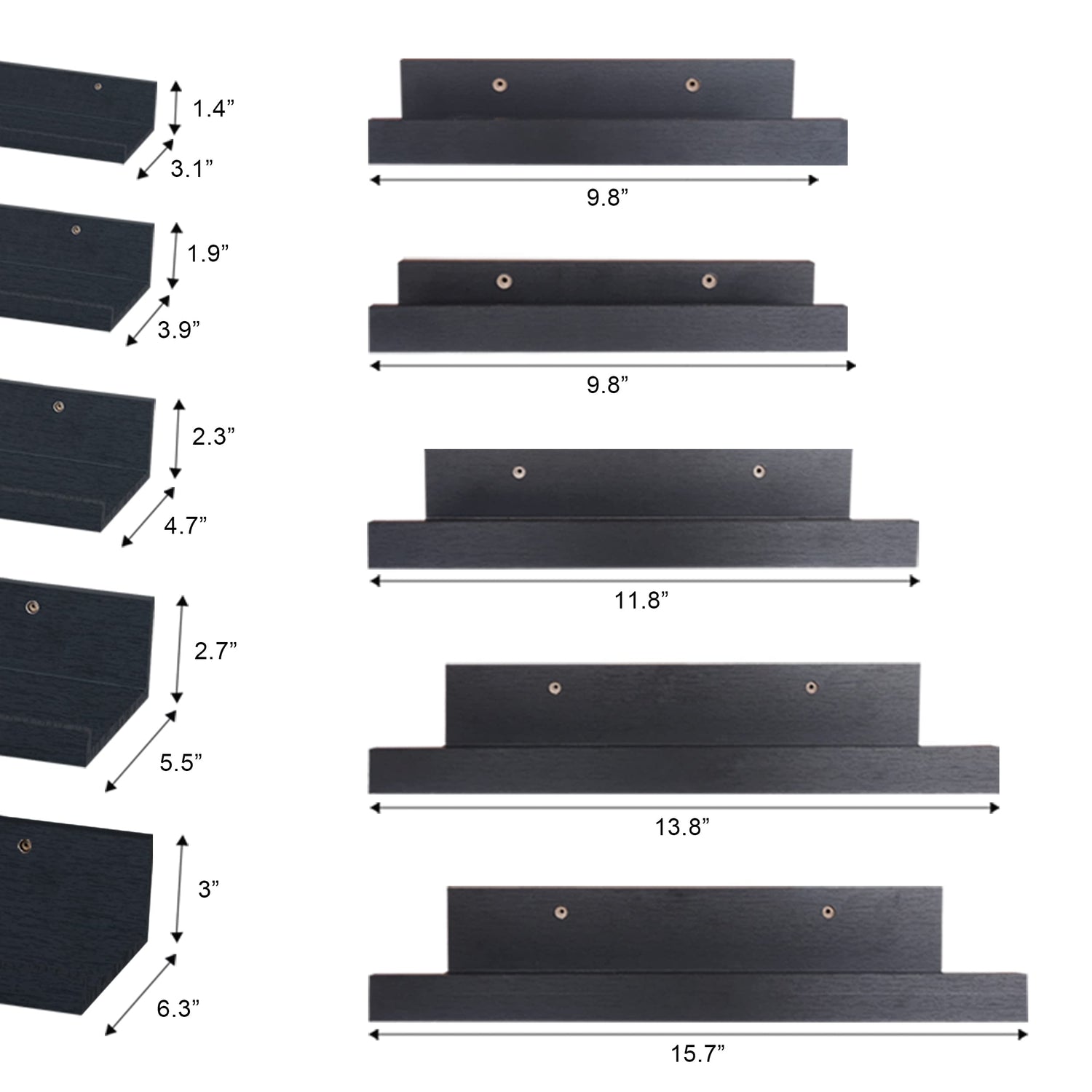 Art Emotion Black Floating Shelves | Set of 5 | Wall Shelf | Wood Bathroom Shelves | Bedroom | Living Room | Kitchen | Office & More (Black)
