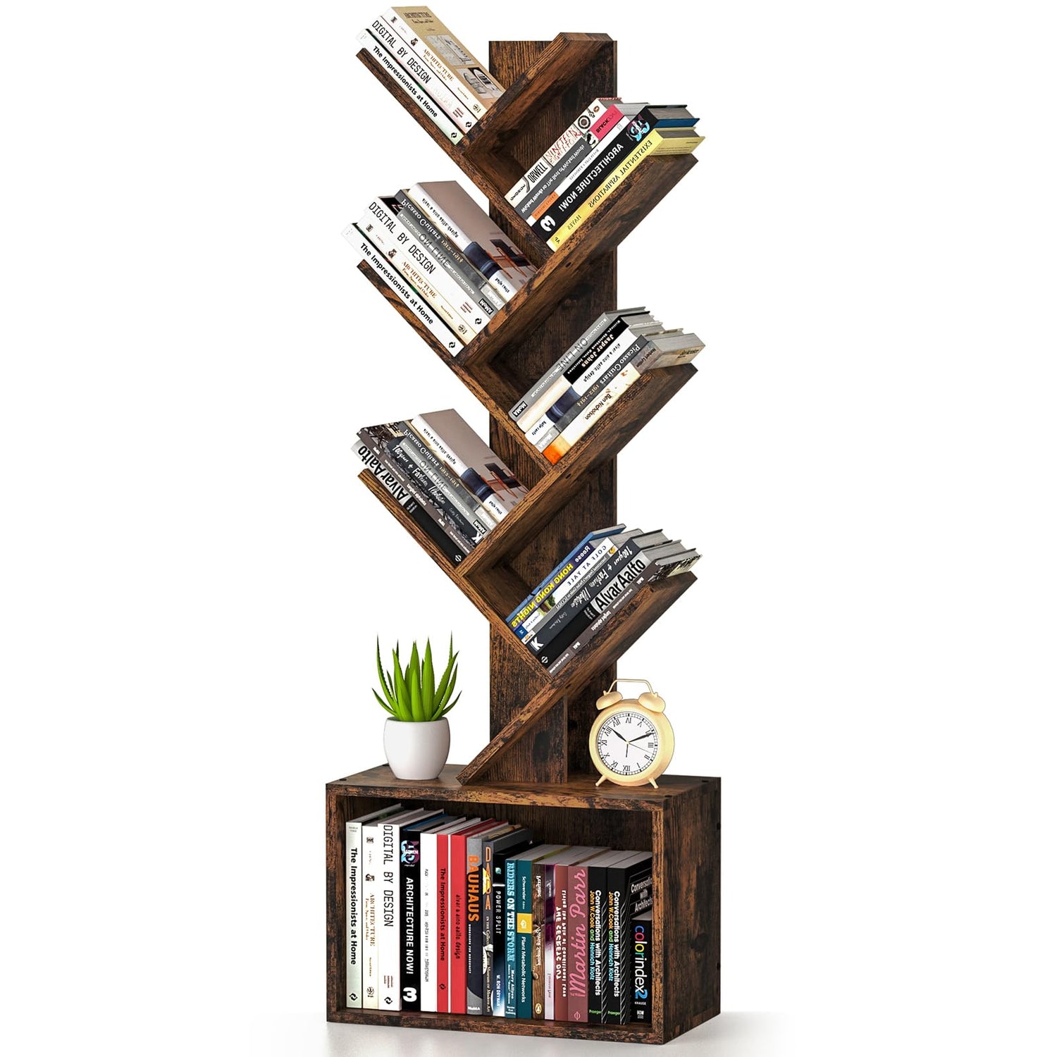 Sturdy Retro Tree Bookshelf by ART-GIFTREE – 6 Tier Floor Standing Bookcase for Home and Office Storage