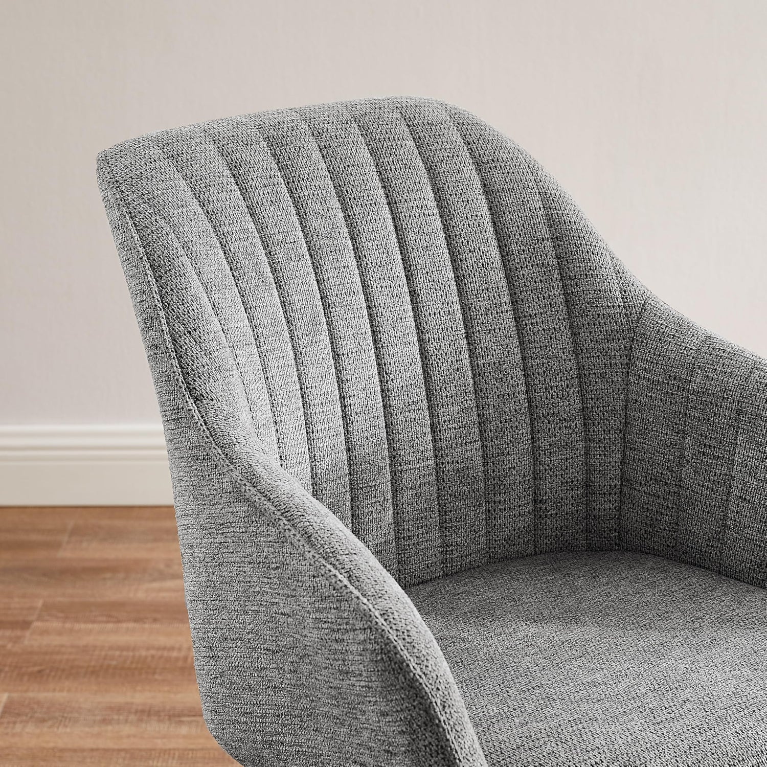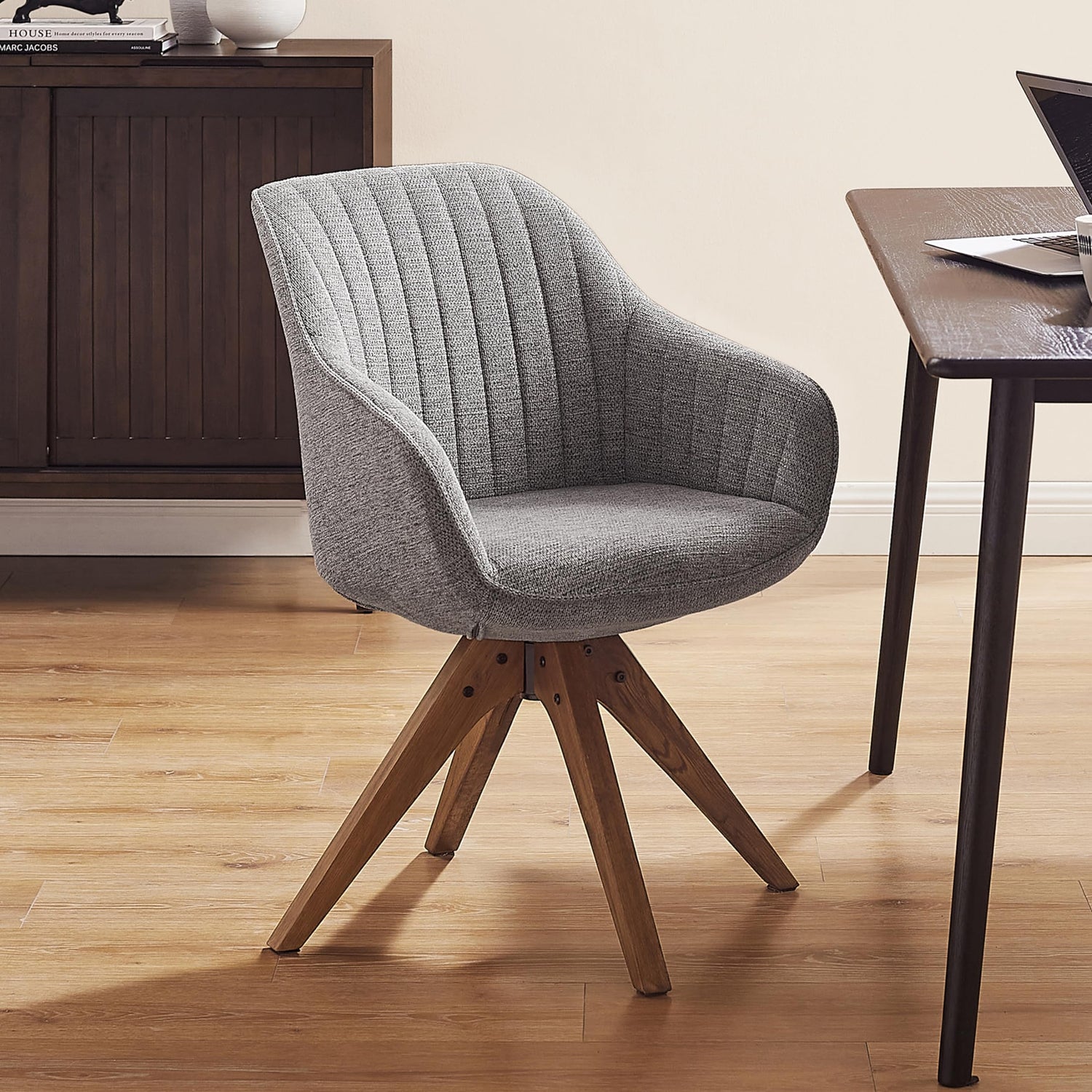 Art Leon Desk Chair - Mid Century Modern Office Chair No Wheels, Swivel Accent Chair with Oak Wood Legs, Fabric Upholstered Arm Chair, Gray