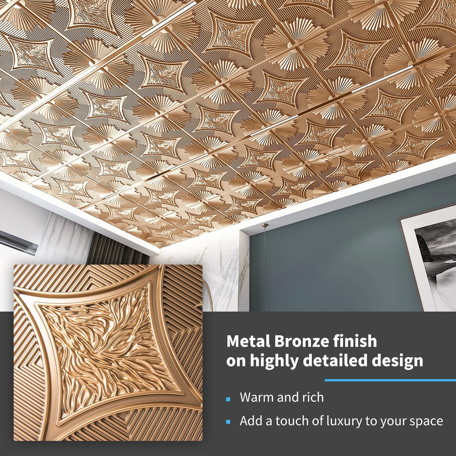 Art3d Drop Ceiling Tiles 24x24 in Bronze (12-Pack, 48 Sq.ft), 3D Wainscoting Panels Glue Up 2x2