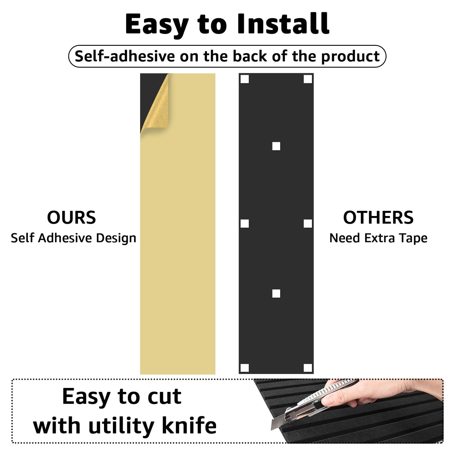- Upgraded Acoustic Panels: This set includes 10 self-adhesive soundproof panels, each measuring 47.24x11.81x0.35 inches. The larger panel design helps to disperse more noise and eliminate echoes more effectively than smaller panels.