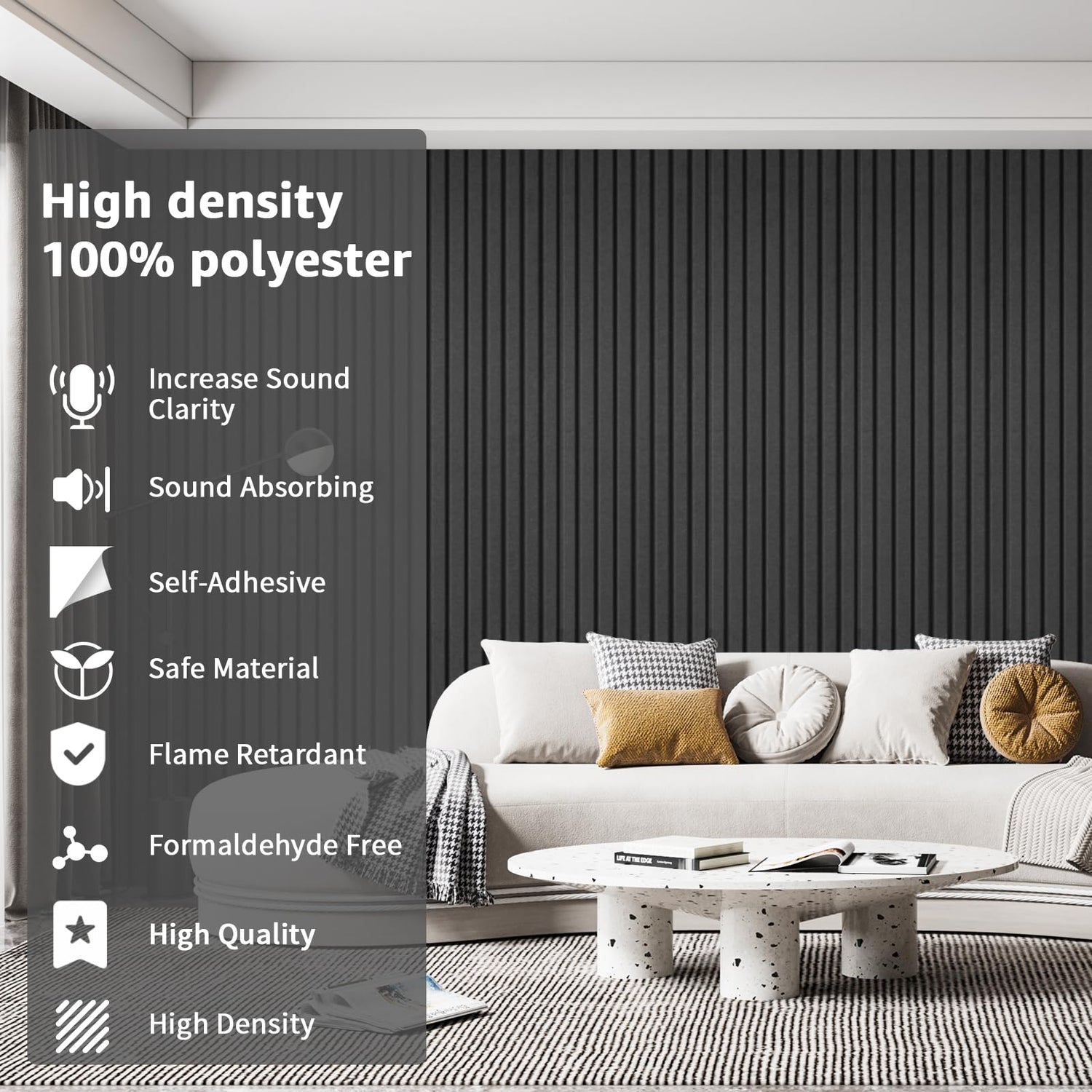 - High-Density Material: Made of 100% polyester for superior sound insulation compared to foam panels. Our panels are flame-retardant, odorless, formaldehyde-free, corrosion-resistant, and fade-proof.