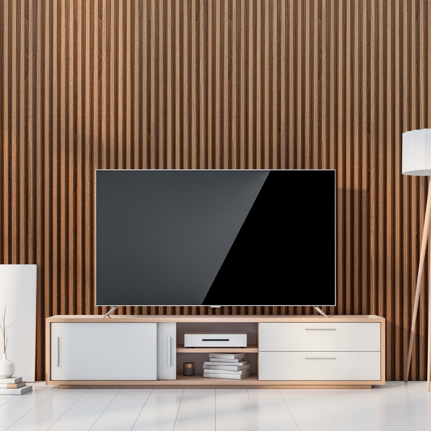 - Safe Material: Made from recyclable plastic and wood fiber with natural wood look PVC laminate, our slat wall panels are free from harmful chemicals, ensuring a safe and healthy indoor environment.
