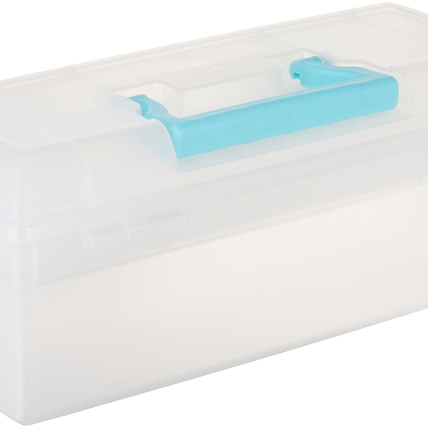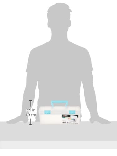 ArtBin 6937AG Essentials Lift-Out Tray Box, Portable Art & Craft Organizer with Handle and Tray, Clear/Aqua