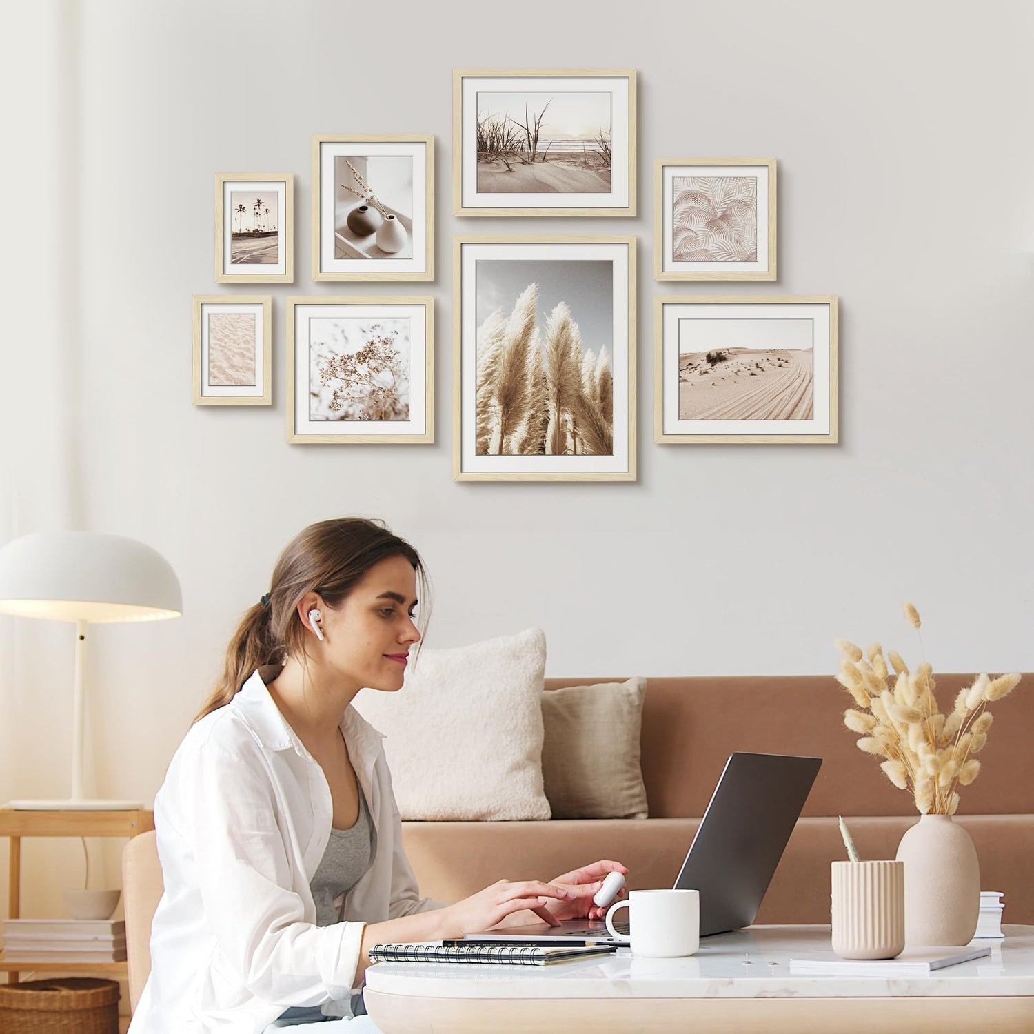 ArtbyHannah 8 Pack Gallery Wall Frame Set Neutral Wall Art Decor,Picture Frames Collage Wall Decor with Desert Pictures,Multiple Sizes…