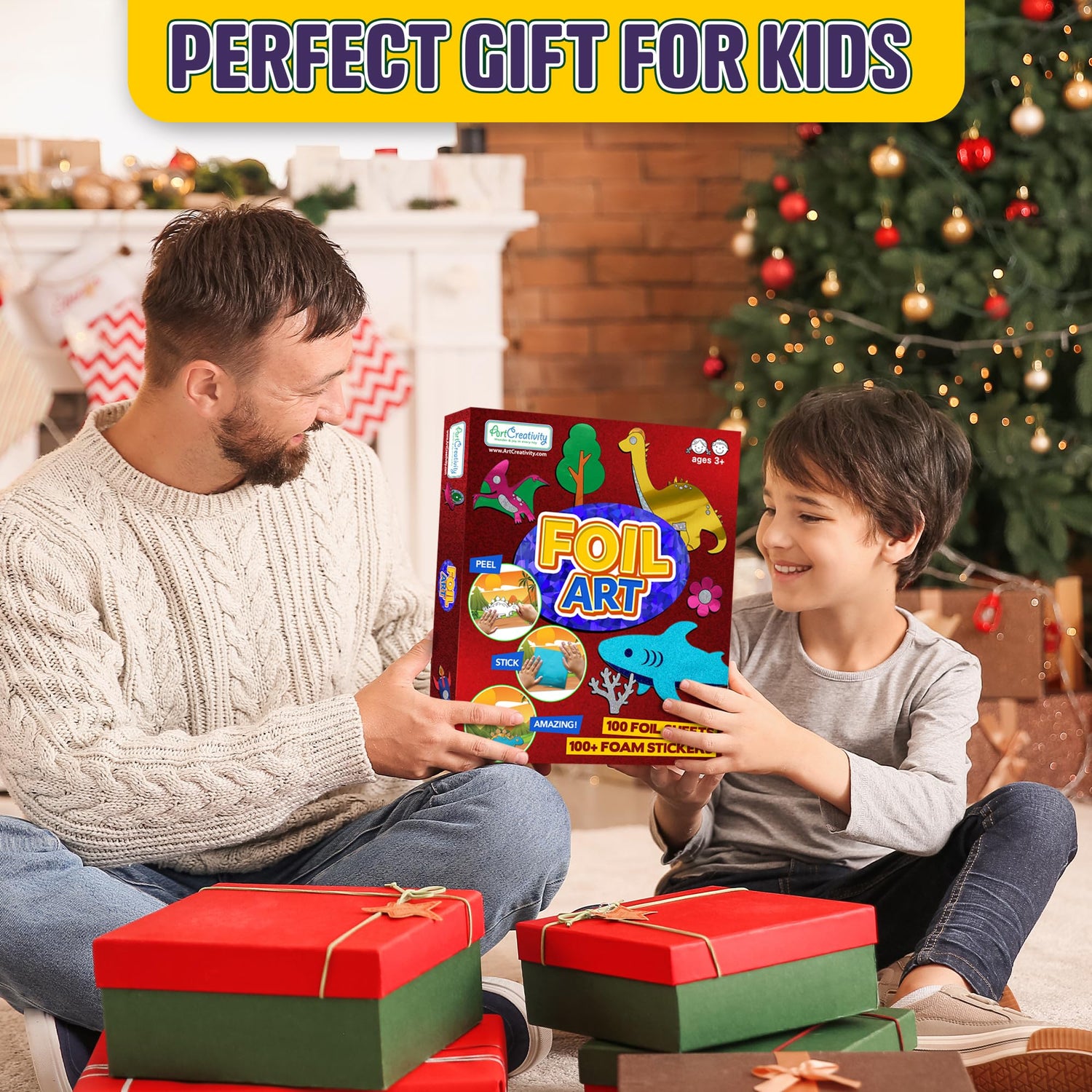 ArtCreativity Foil Art Kit for Kids - 220 Piece Crafts Set - 90 Foil Sheets, 10 Backgrounds, 100 Foam Stickers, 20 Googly Eyes - Mess-Free Foil Fun Art for Kids, Boys and Girls Ages 4, 6, 8, 10, 12