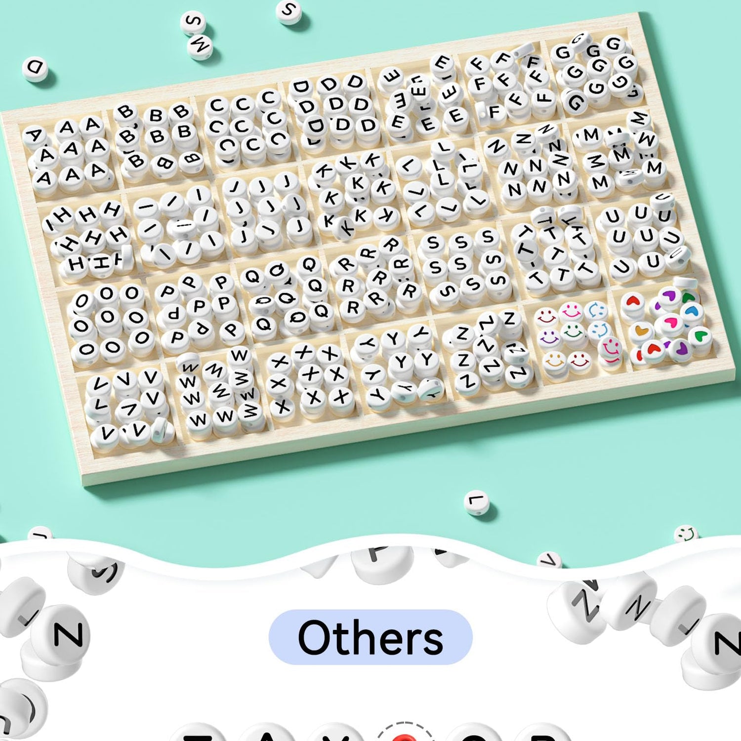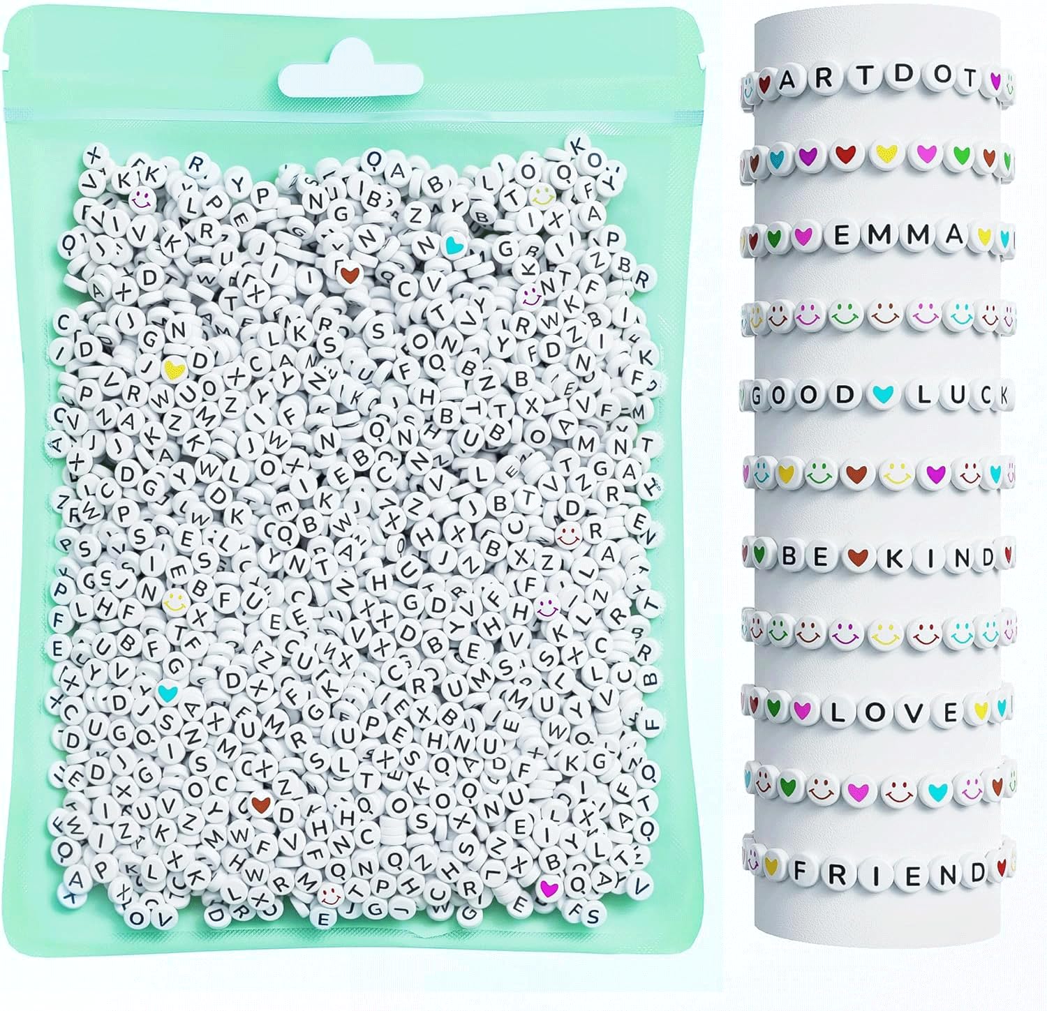 - DIVERSE PAIRING POSSIBILITIES - Unlock creativity with this letter bead set featuring 26 alphabet beads, hearts beads, and smiley faces, which can perfectly match with clay beads, glass beads, pony beads, etc.