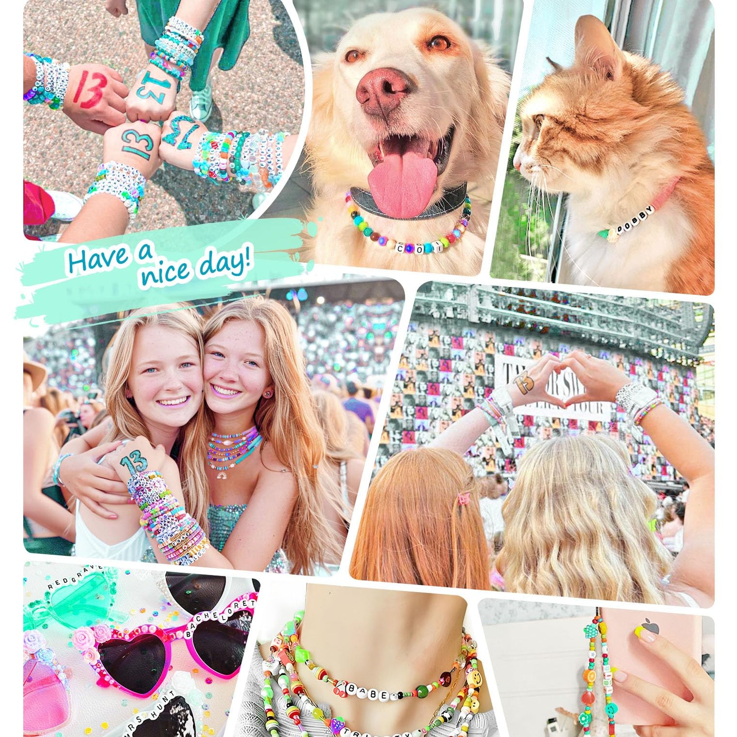- SHARE FRIENDSHIP BRACELETS - Express admiration for TS by personalizing friendship bracelets with song titles or lyrics for the concert, so as to share these unique bracelets with fans and create cherished memories of the concert experience.