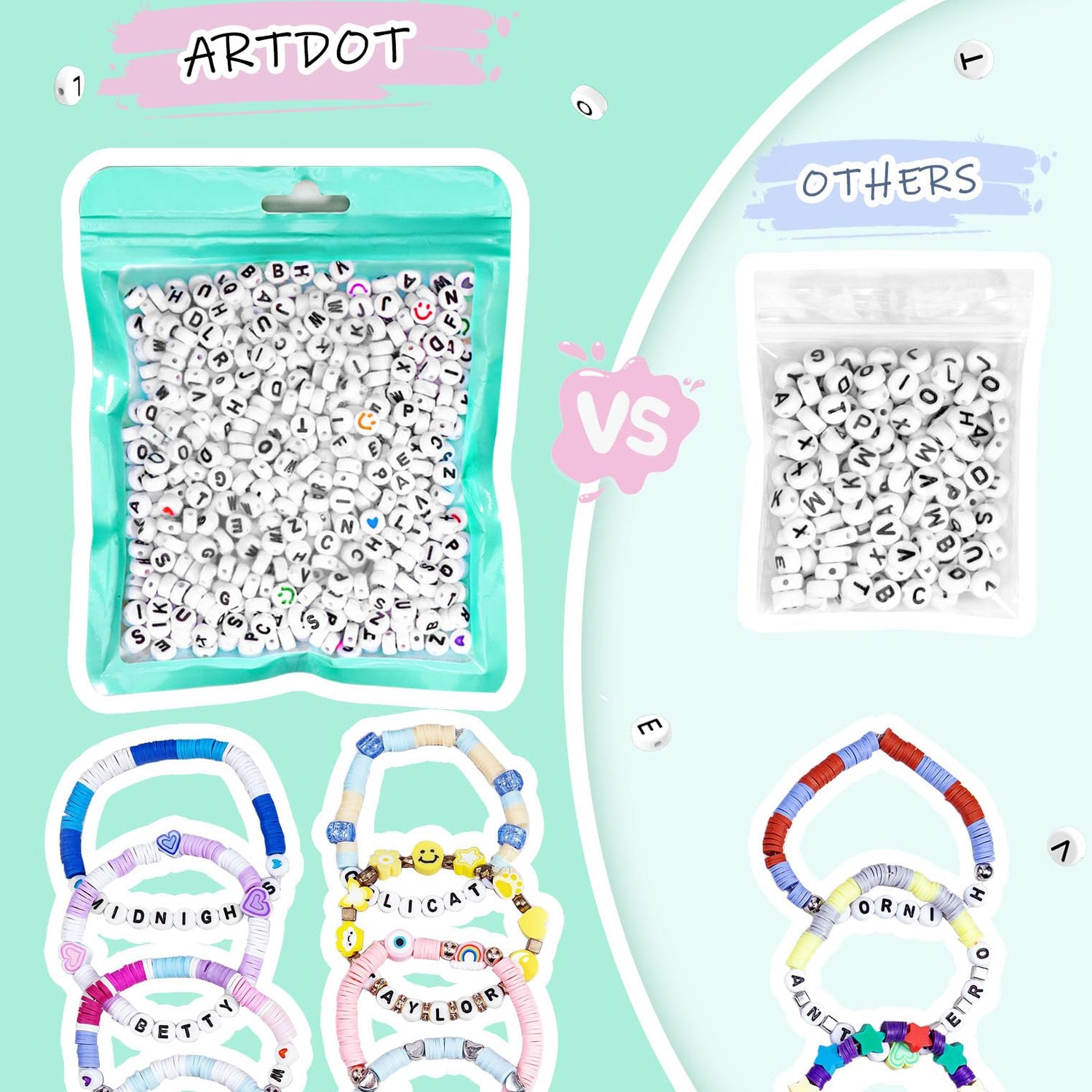 - MORE VALUE FOR YOUR MONEY - Letter beads set offers more varieties and quantities than offline stores. With enough beads to make over 20 bracelets, you can enjoy endless design possibilities without worrying about the cost.