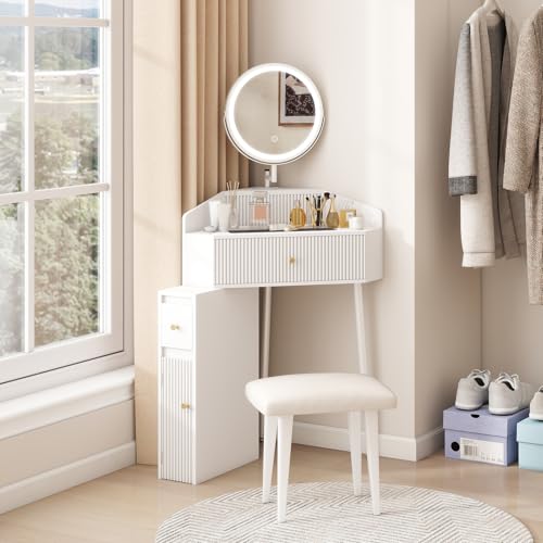 - Space-Saving Corner Design: Our small makeup vanity fits perfectly into any small corner, ideal for compact rooms or apartments. Enjoy a functional vanity without sacrificing space