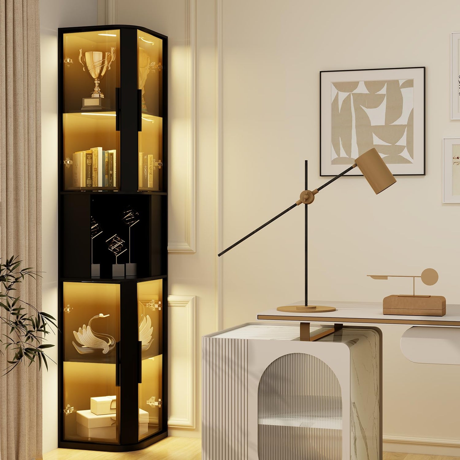 ARTETHYS Glass Display Cabinet Doors 78‘’ Tall Corner Display Case with Lights for Collectibles 5-Tier Curio Storage Shelf for Toys, Books, Black