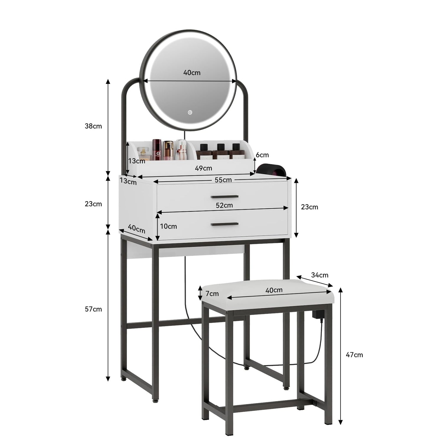- Elegant and Functional Design: A cute slim white dressing table with lights, enhances the beauty of your room and look more attractive. We specially added a hair dryer rack for this dressing table, making it more convenient for daily use