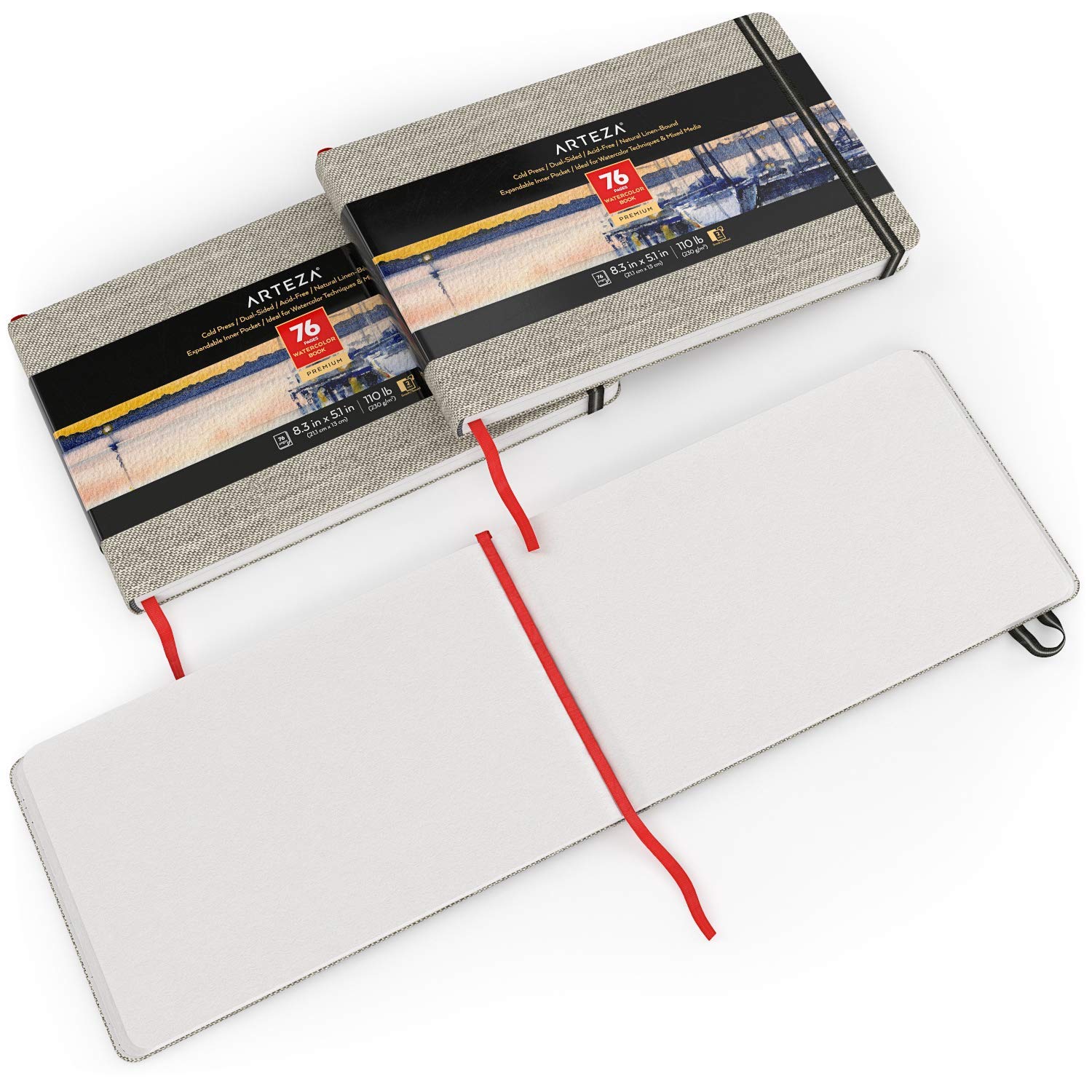 ARTEZA Watercolor Book, Pack of 3, 76 Pages Each, 5.1x8.3 Inch Watercolor Notebook, 110lb/230gsm Cold Pressed Water Pad