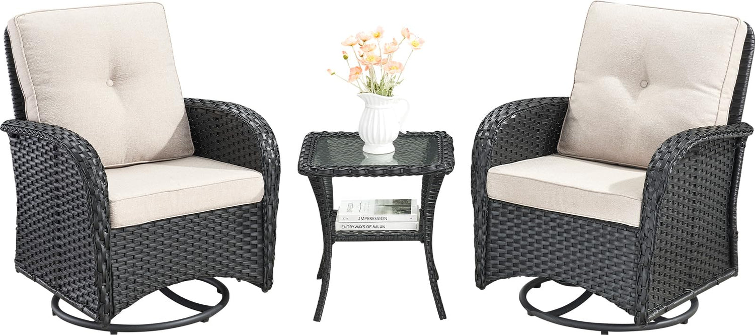 - 【EASY TO ASSEMBLE】: Designed with convenience in mind, this 3 pieces patio swivel chairs set is designed with ease of assembly in mind. Comes with simple furniture installation instructions and can be assembled in 1 person without any additional tools.