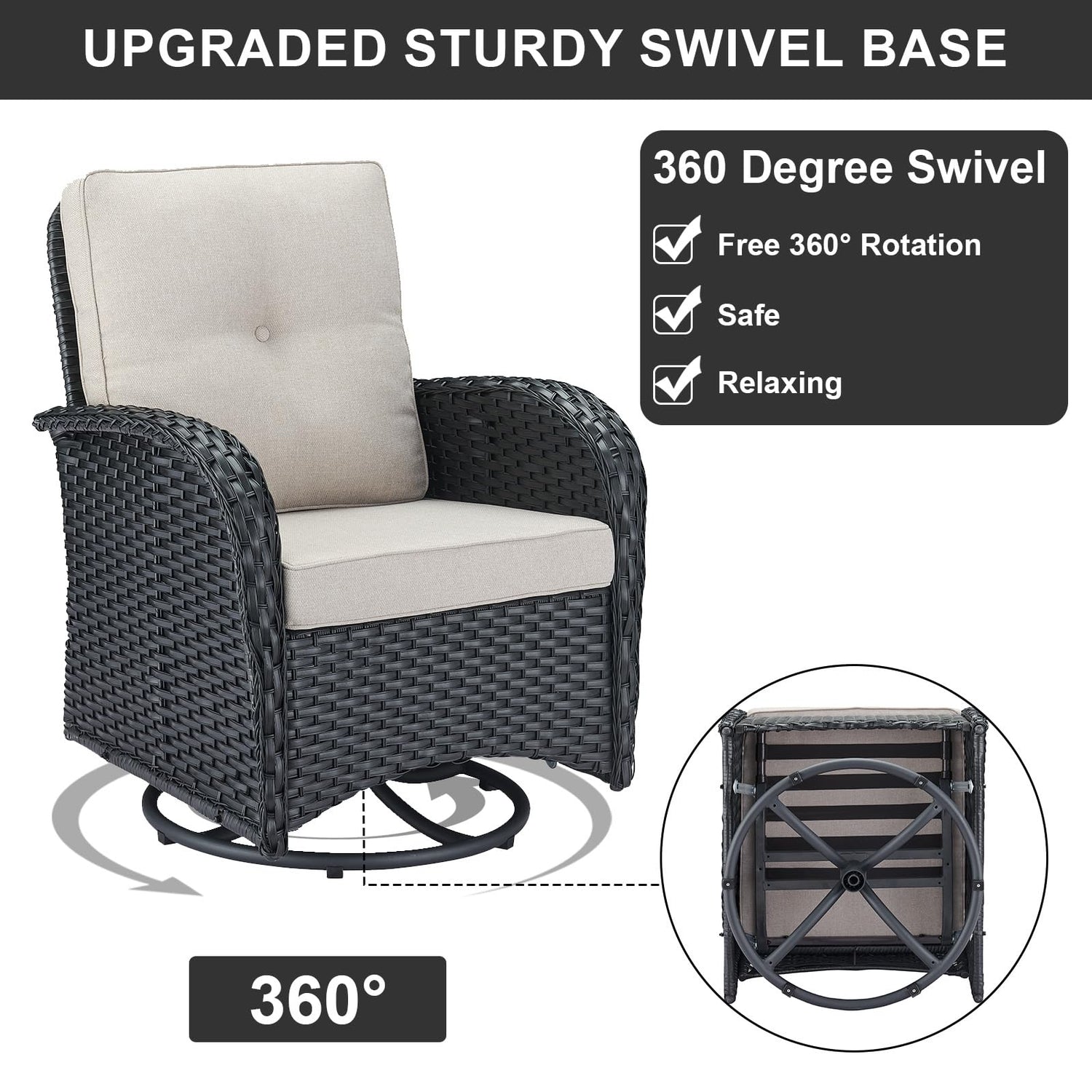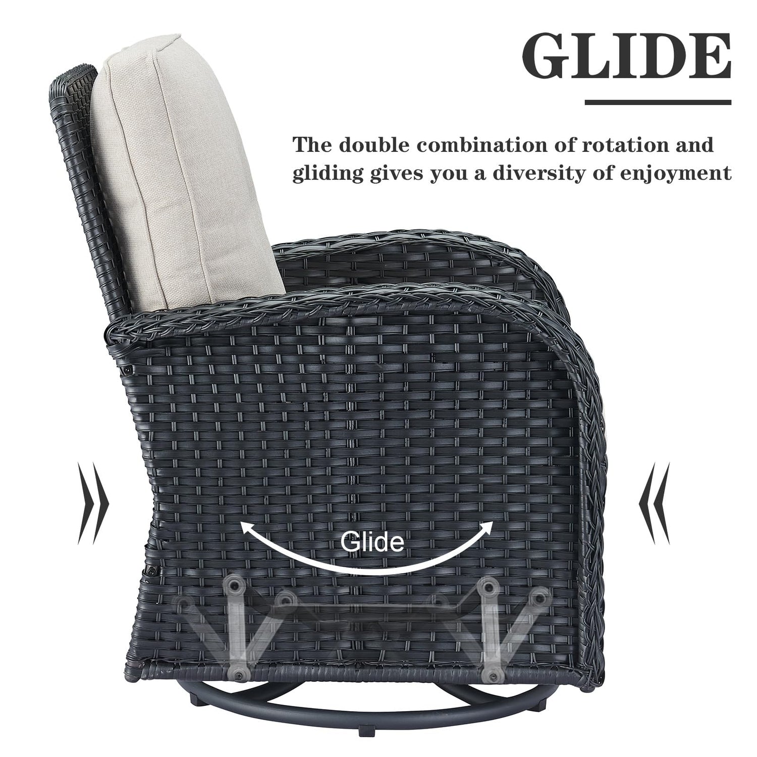 - 【360°SWIVEL & SMOOTH GLIDER】: Our wicker swivel patio chairs features a unique combination of 360° swivel and front and back glide for you to enjoy the outdoors. The base is fitted with a high-strength, rust-resistant frame for extra stability and support. Whether you're gathering with friends or enjoying the scenery alone, the swivel and glide features make it easy to find the perfect viewing angle.