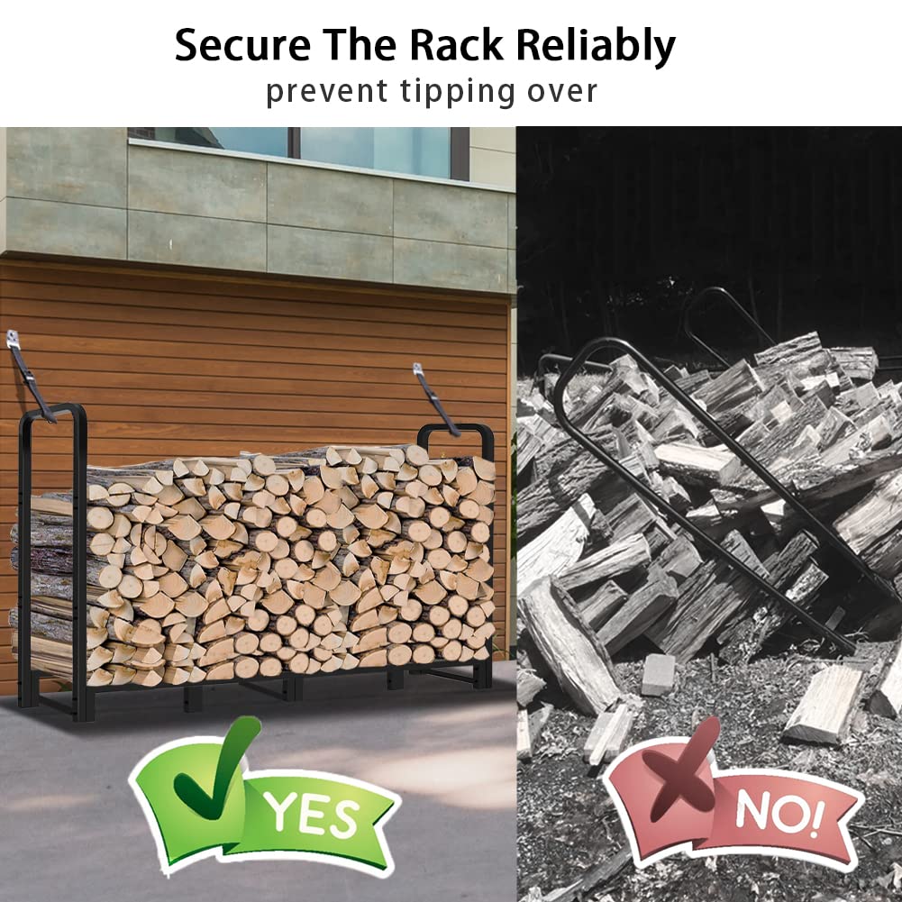- PREVENT TIPPING OVER - Features 2 prevent tipping lock rings and 10 solid rack legs, that means we take more care for the safe of your families. Secure the rack reliably and effectively prevent tipping over of the heavy firewoods, which could otherwise result in serious injuries and even fatalities in the case of babies, children. Just lock up the rack with extra prevent tipping straps and put the rack on a hard surface.