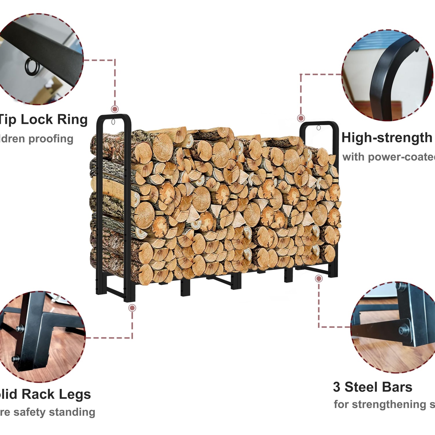 Artibear Firewood Rack Outdoor 8ft Heavy Duty Logs Holder for Indoor Fireplace Metal Wood Pile Storage Stacker Organizer, Matte Black