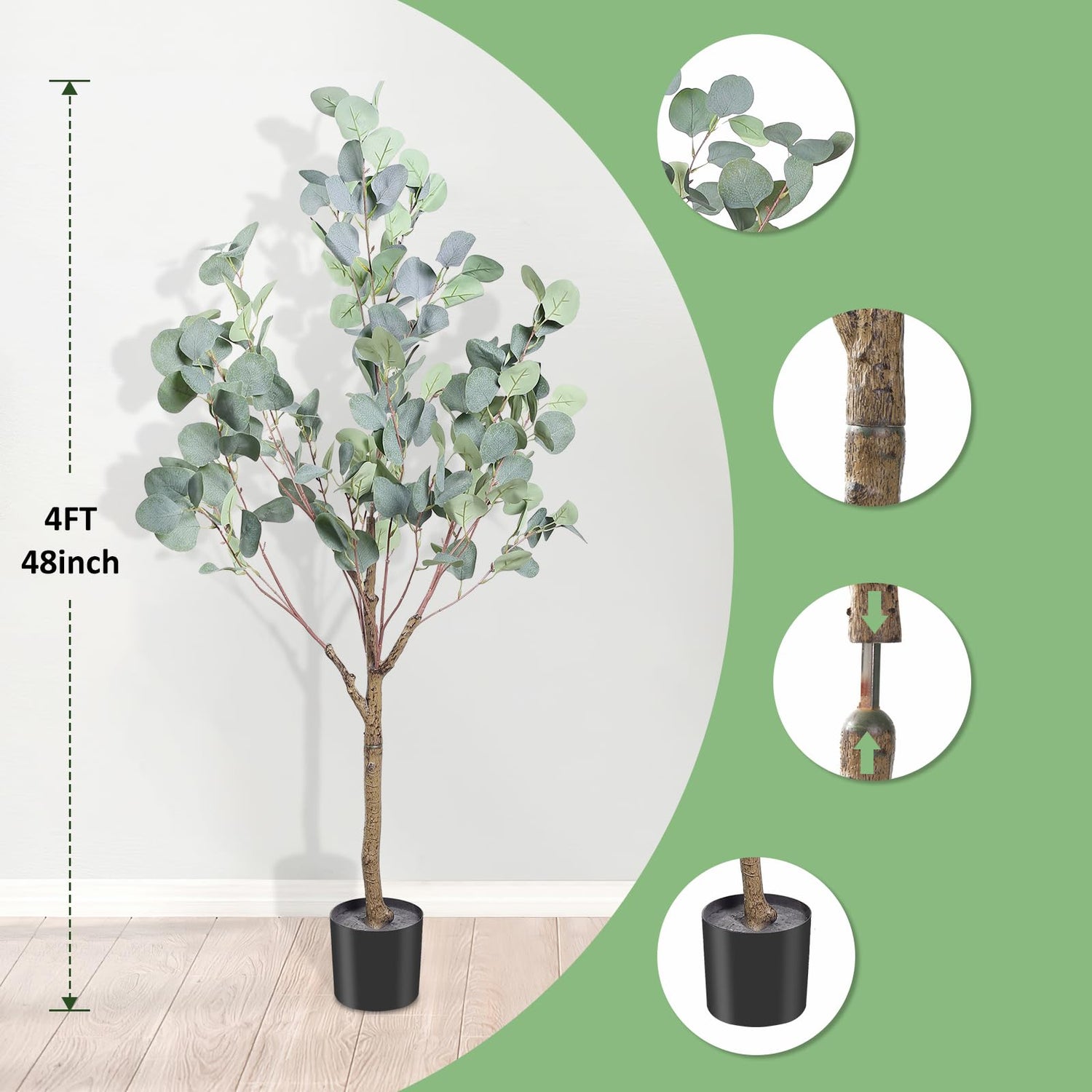 - 【Realistic Faux Plants】This 4FT tall faux Eucalyptus tree crafted from silk fabric with delicate veins. The irregular trunks add to the authentic look, making this tree incredibly realistic.