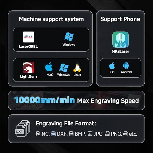 - ๐ ๐ฎ๐ง๐๐ญ๐ข๐จ๐ง๐๐ฅ ๐ ๐๐๐ญ๐ฎ๐ซ๐๐ฌ: This Laser machine can engrave various materials such as wood, leather, acrylic, ceramics, stone, etc. Allowing you to customize business cards, wood blanks, dog tags, tumbler laser marking. Choose the laser power that fits your needs:Diode laser (3W, 7W)โThe 3W model is better suited for fine engraving and can also be used for cutting, but only for very thin materials (less than 2 mm/0.08 inches); for both engraving and cutting, step up to the 7W optionsโwith higher power delivering faster engraving and deeper cuts.