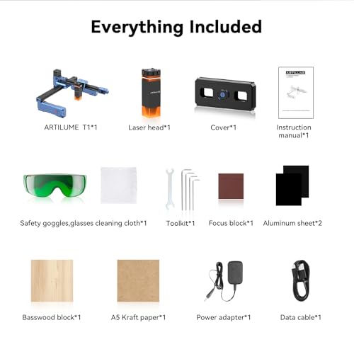 - ๐๐๐๐๐ญ๐ฒ ๐ ๐๐๐ญ๐ฎ๐ซ๐: Artilume laser engraving machine ensures safety with emergency shutdown and motion protection features. It also detects and prevents overheating, and comes with protective covers and goggles for added safety.CAUTION!!The machine will produce burning fumes during engraving. Please choose a well-ventilated environment for your DIY carving creative journey.Avoid engraving materials such as PVC, vinyl, highly reflective metals, ABS plastic, carbon fiber, polycarbonate, or fiberglass, as they can release toxic fumes, damage the machine, or create fire hazards.