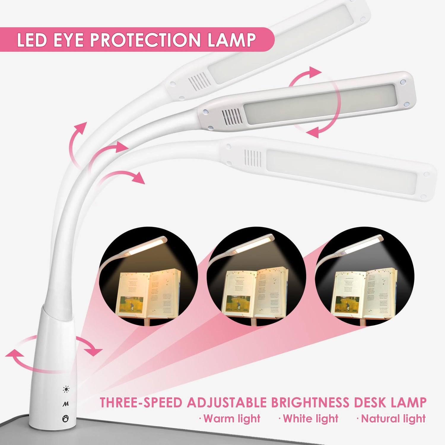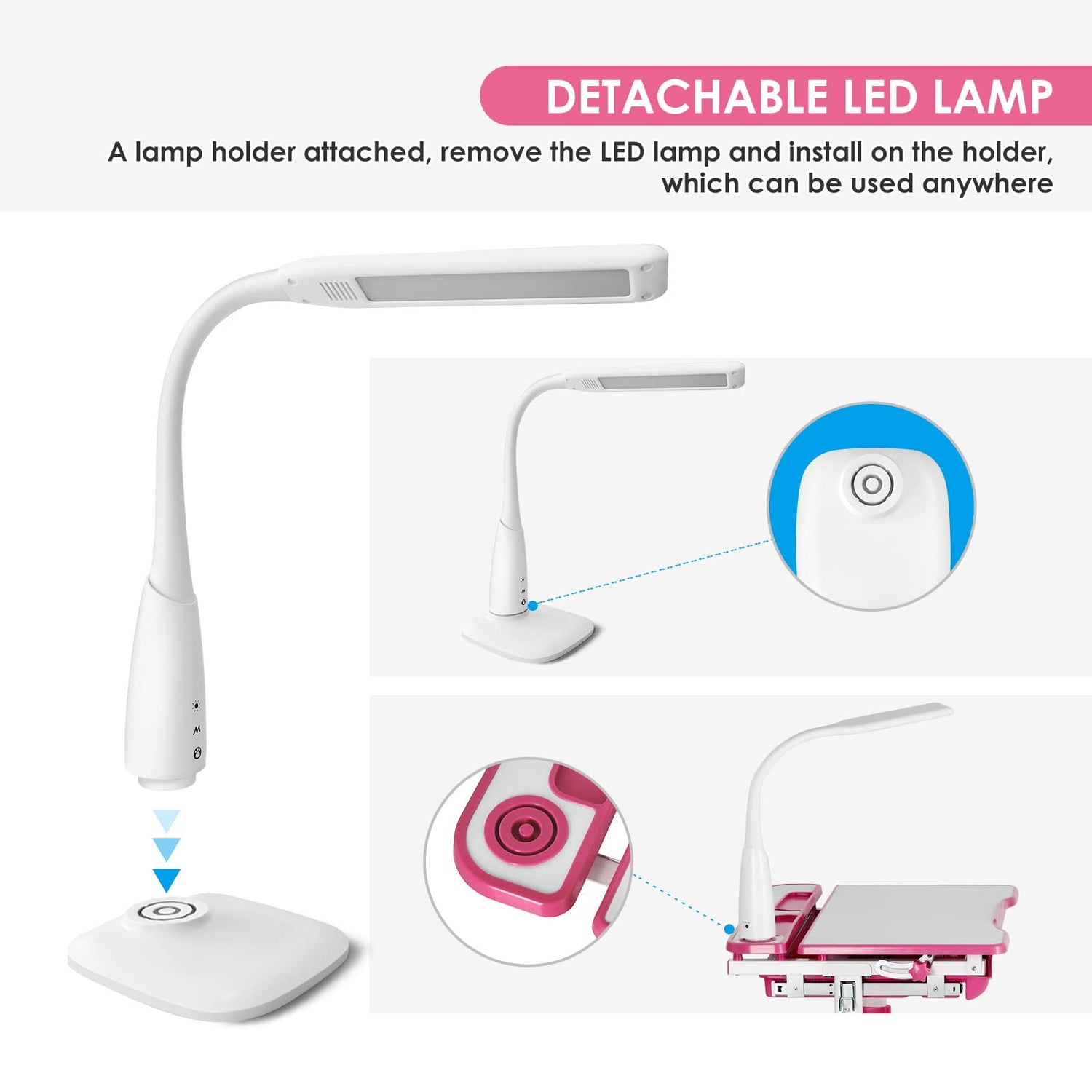 - Ergonomic design. Twist the knobs on both sides of the table, the tabletop can tilts from 0-40° which can satisfy the need for writing, reading and drawing . Three-speed adjustable brightness desk lamp make your kids study more relax at night, not hurt eyes. The lamp is touch which made it more fun for your kid!