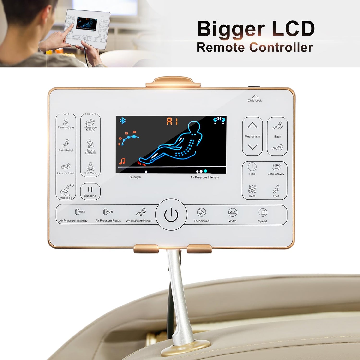 - AI Voice Control & Bluetooth Speakers - Just say, “Hi, Artist. Focus Massage.” - Our advanced voice recognition responds instantly to adjust settings and switch modes without lifting a finger. The AI voice control feature is easy to use and that it can be turned off manually. The Artist hand massage recliner chair comes with Bluetooth speakers for music and phone calls; stream your favorite music or soothing nature sounds directly through the chair’s high fidelity speakers for deeper relaxation.