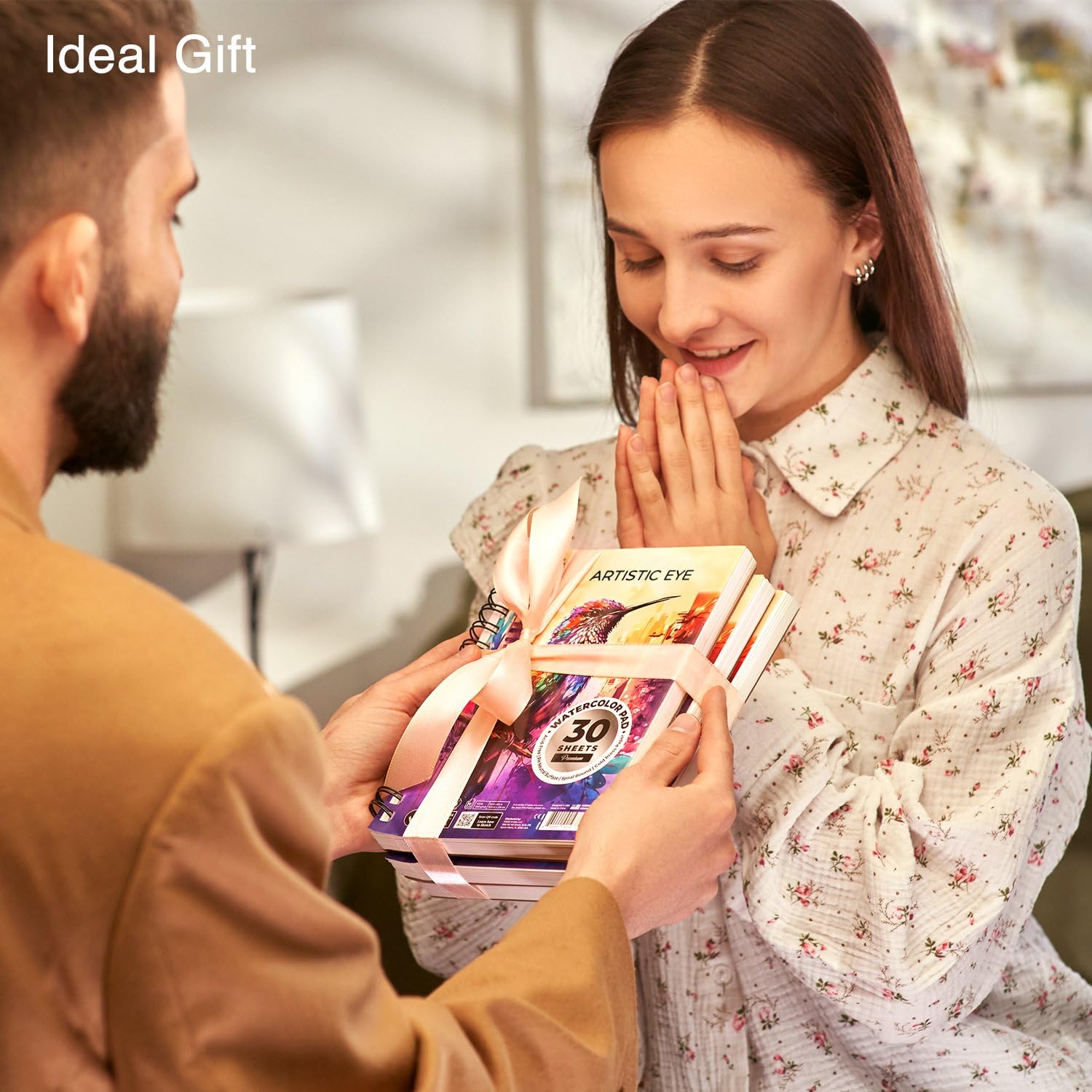 ARTISTIC EYE 5.5x8.5 Premium Watercolor Pads, Pack of 3 (90 Sheets), Spiral Bound, 140lb (300gsm), Acid-Free Paper, Perfect for Most Wet & Dry Media, Ideal for Beginners, Artists & Professionals