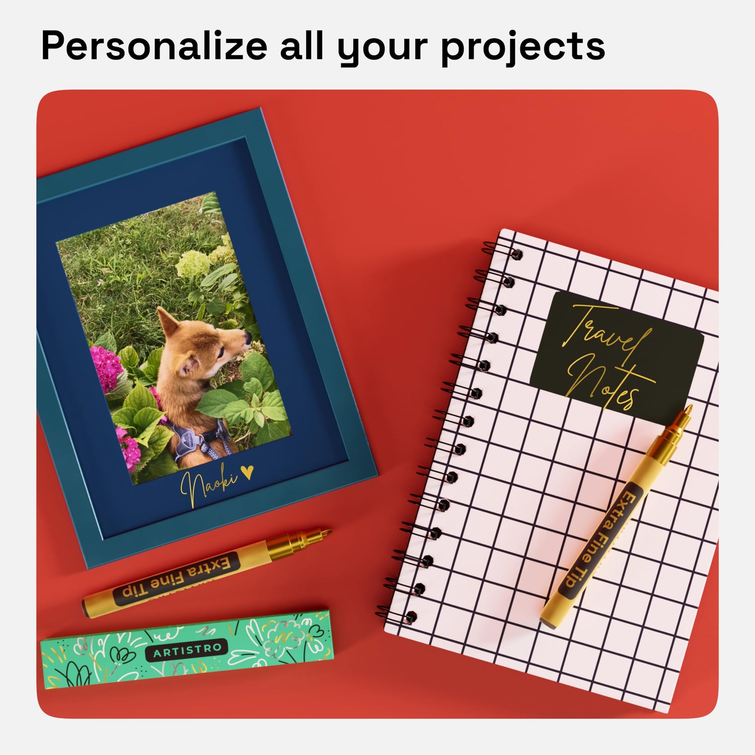 ARTISTRO 2 Acrylic Paint Pens for Rock Painting Ceramic Wood Glass Tire Plastic, Fabric Marker Paint Markers Ideal for Labeling DIY Crafts Art Projects, 0.7mm Extra Fine Tip, Gold