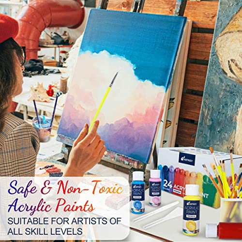 Artkey Acrylic Paint Set - 24 colors 2oz/59ml Acrylic Paints Professional Artists Painting Kit for Canvases Fabric Rock Leather Easter Egg Wood