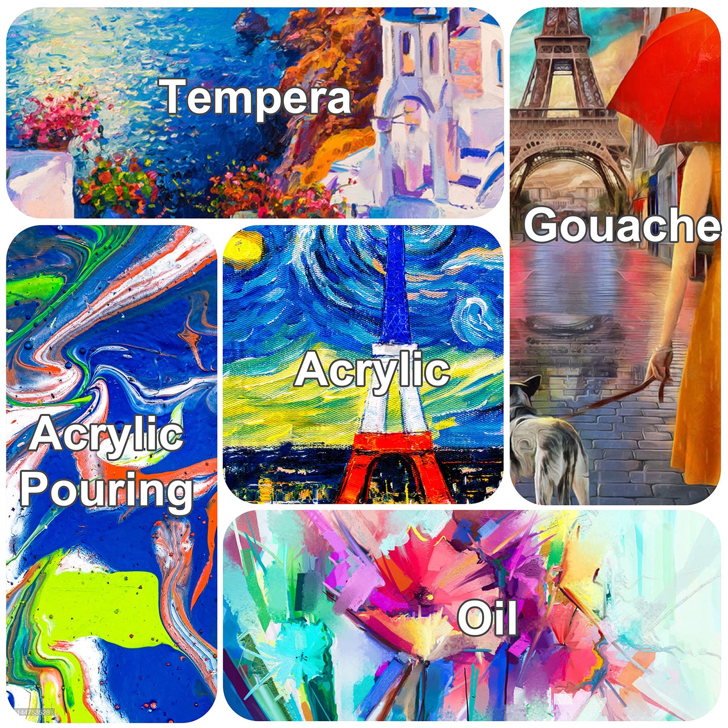 - Wet and Dry Paint Canvas: These art canvases for painting designed for a wide range of paints and techniques. Suitable for various kinds of painting materials, such as oil, acrylic, gouache, pastels, and tempera. Keep your paintings bright and glossy