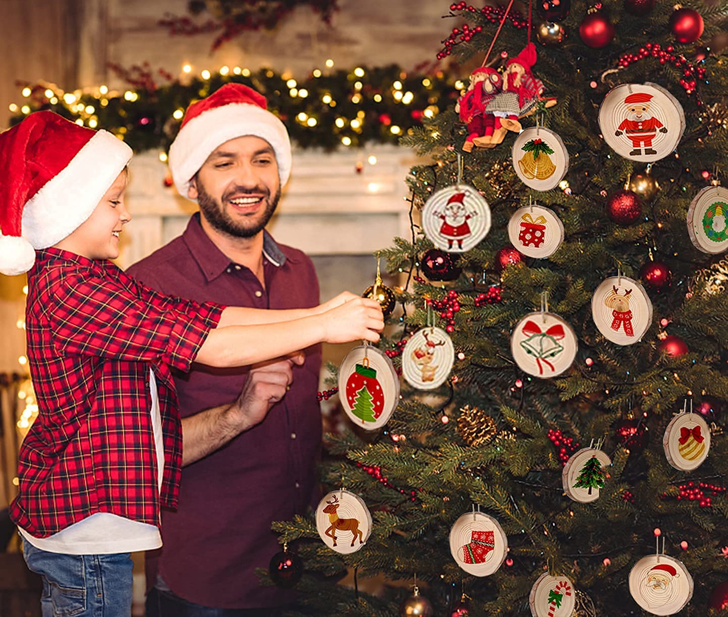 Artmag Natural Wood Slices 40pcs 2"-2.4" Unfinished DIY Crafts Predrilled with Hole Round Wooden Circles for Arts Rustic Wood Slices Christmas Ornaments Decor