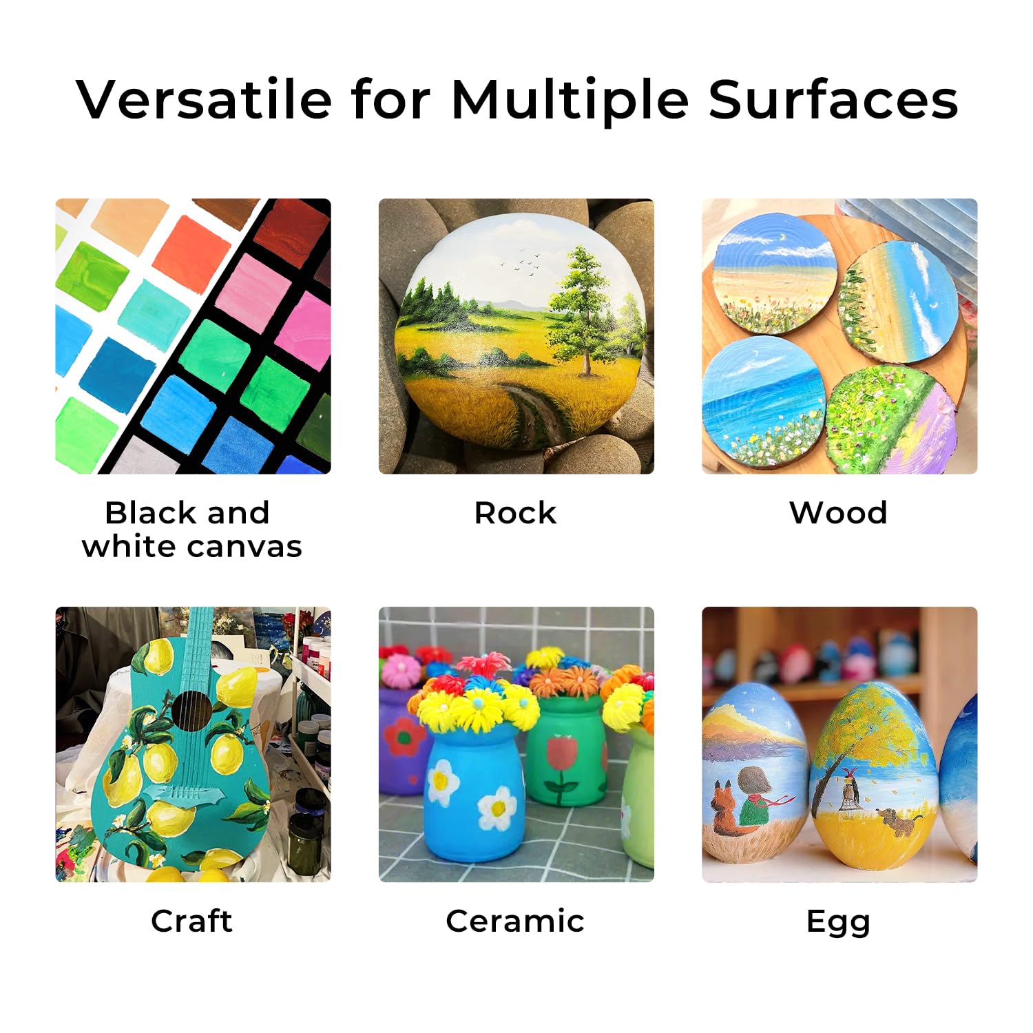 - WIDELY USED: ARTME Acrylic Paint can be applied to a variety of surfaces like canvas, wood, glass, plastic, metal, and stone. They are permanent, waterproof, and will not fade, therefore, it is also suitable for outdoor use, adding a decorative touch to interior/exterior walls, trim, doors, furniture, crafts, and more.